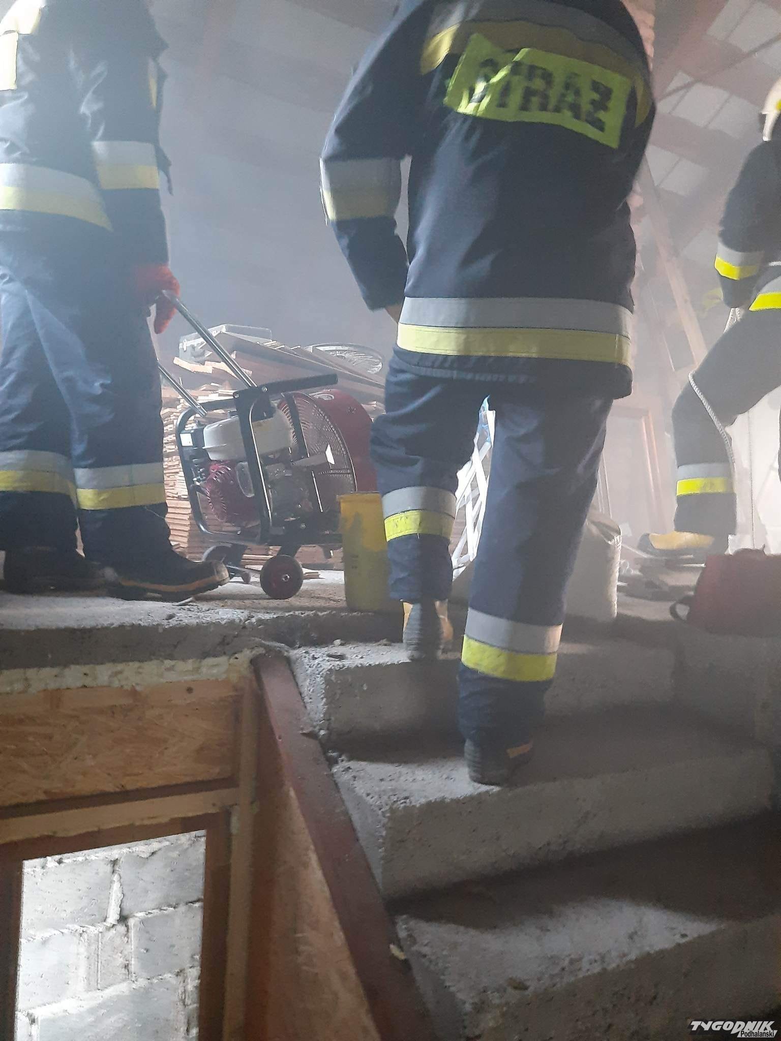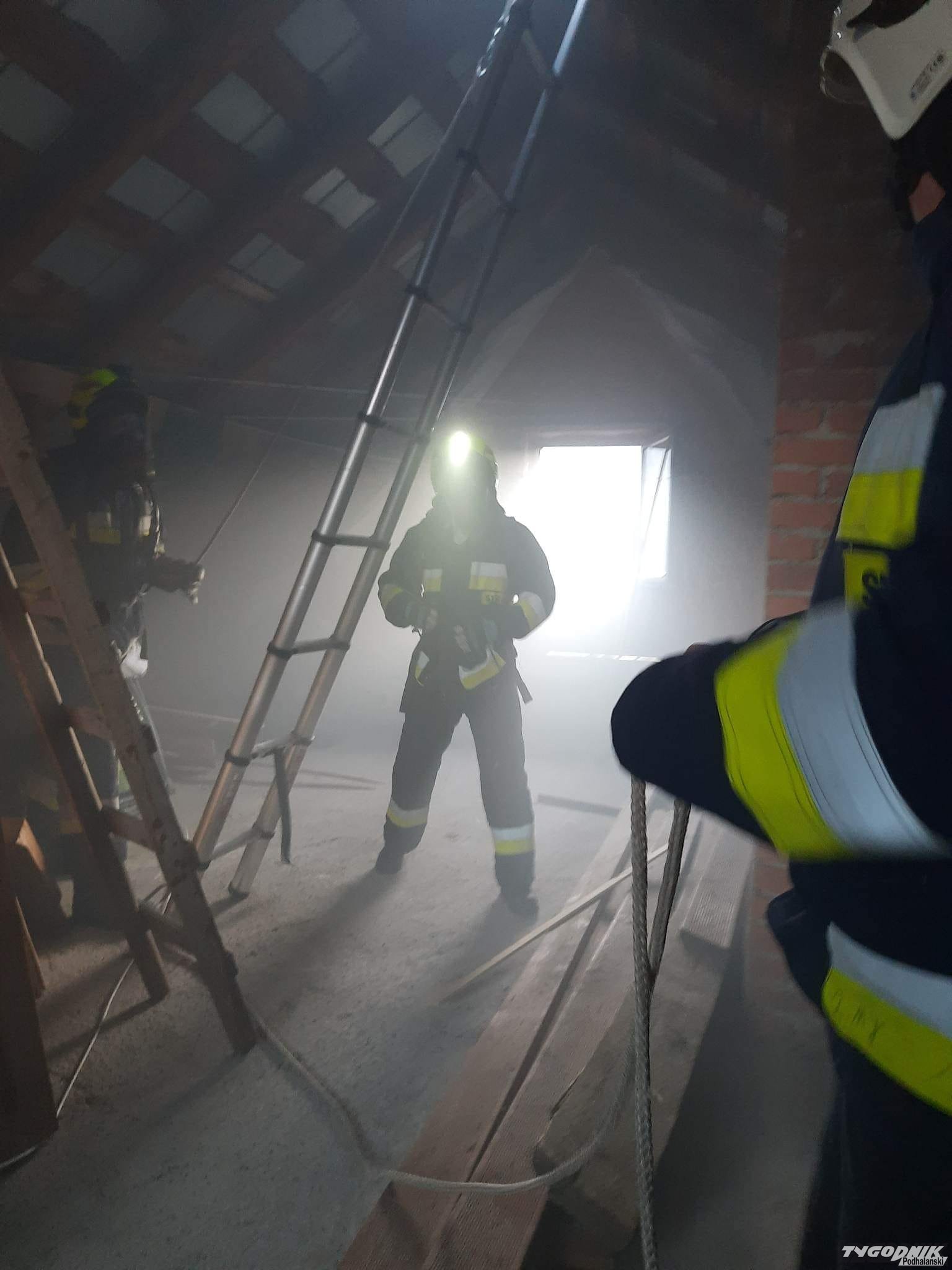 Druhowie po ugaszeniu pożaru zrobili przegląd budynku.