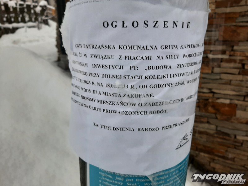 Zaznacza, że w większym pensjonacie obok sąsiad ma pełno gości. Też nic nie wiedział o odcięciu wody. Gdy informuję go, że przecież o planowanym wyłączeniu wodociągów pisał Tygodnik Podhalański na swej stronie, że były informacje w internecie, właściciel pensjonatu tylko macha ręką. - Panie! Kto ma czas siedzieć w internetach?! Człowiek pracuje od rana do wieczora, przy gościach jest masa roboty, ja nawet nie czytam powiadomień, jakie mi serwis przysyła na komórkę. Powinni ogłoszenia porozlepiać na słupach, tablicach, to może by człowiek zauważył - kończy rozmowę właściciel pensjonatu przy ulicy Makuszyńskiego.