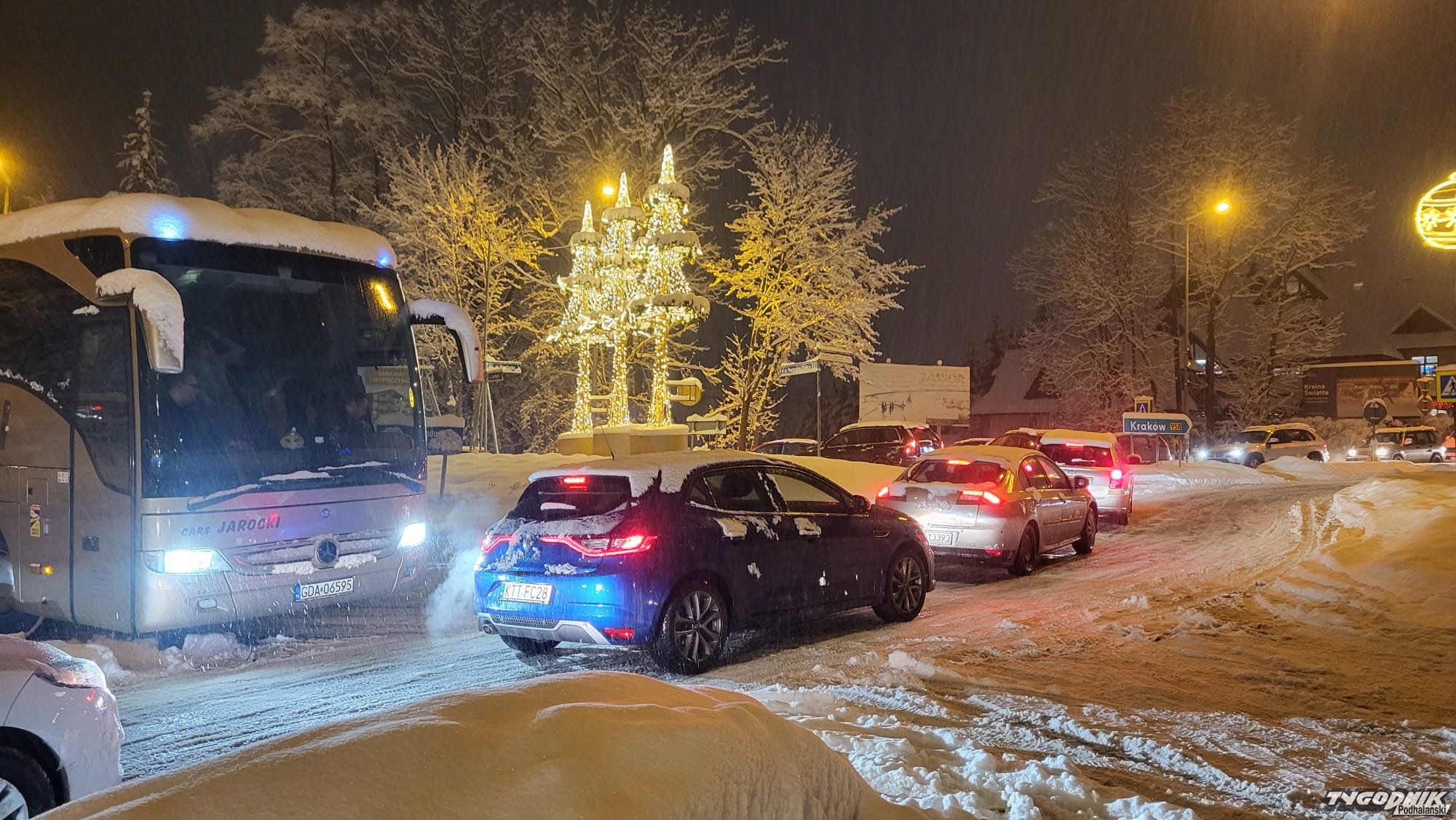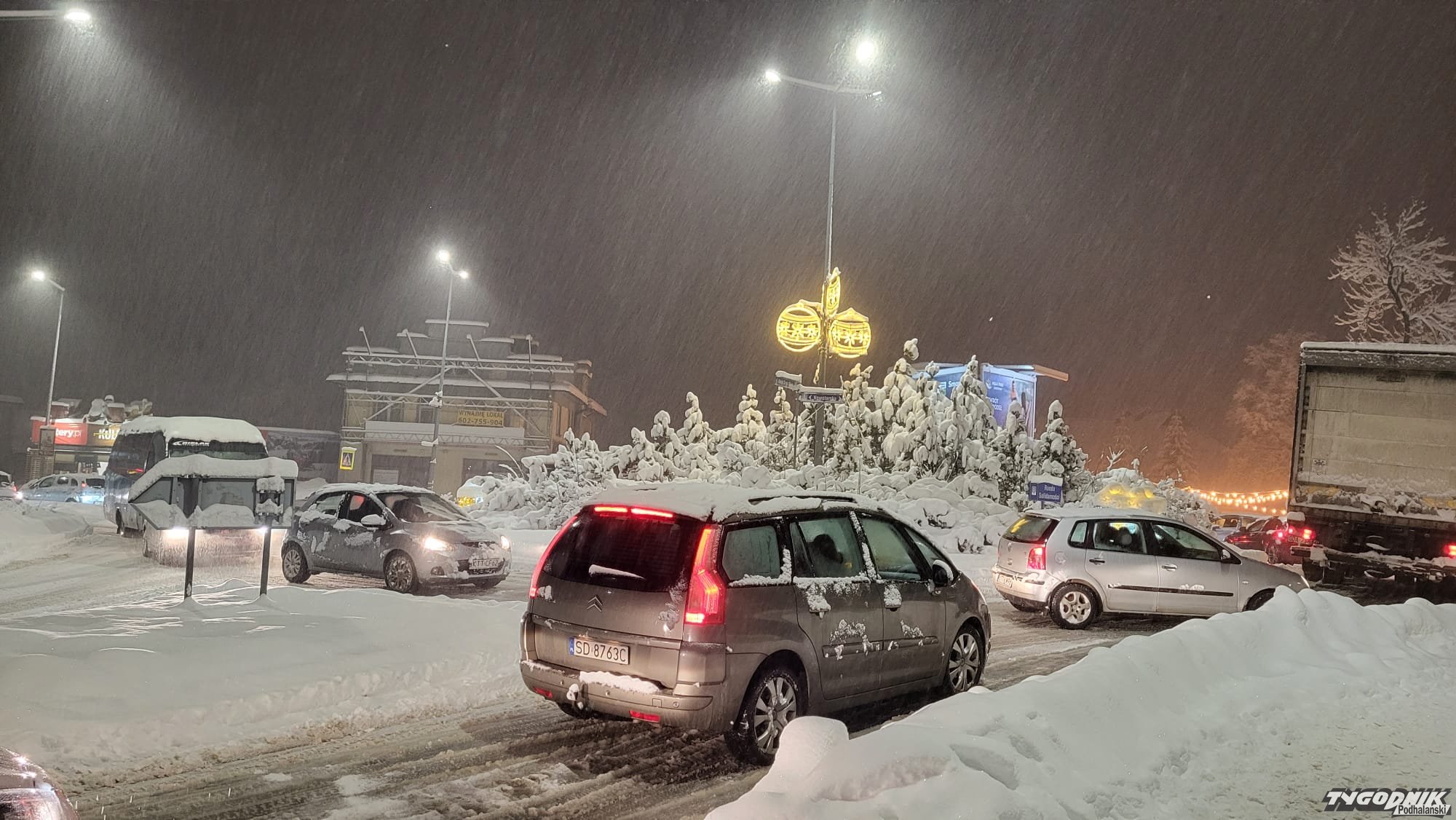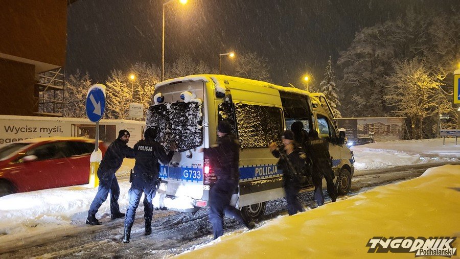 Ulice w Zakopanem są bardzo śliskie, szczególnie duże problemy mają kierowcy na ul. Nowotarskiej, tu nawet policjanci musieli pchać swoje auto.