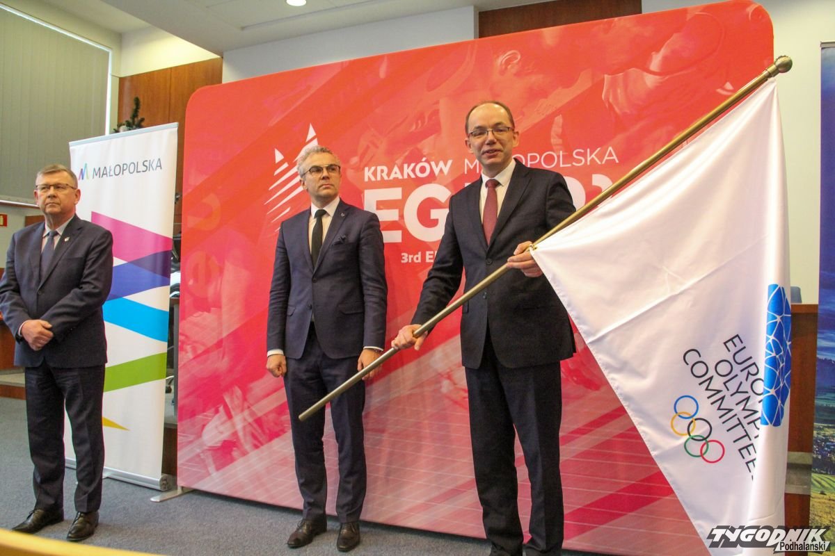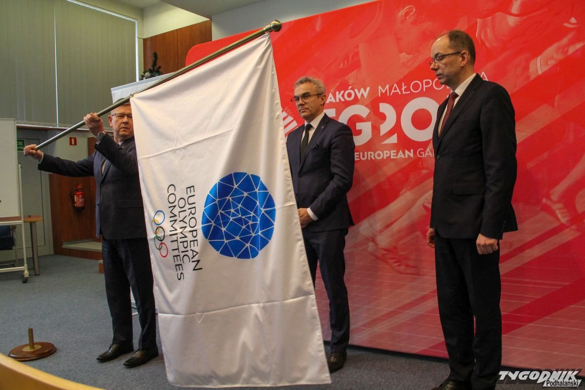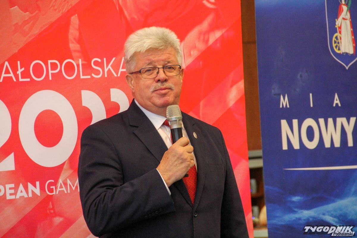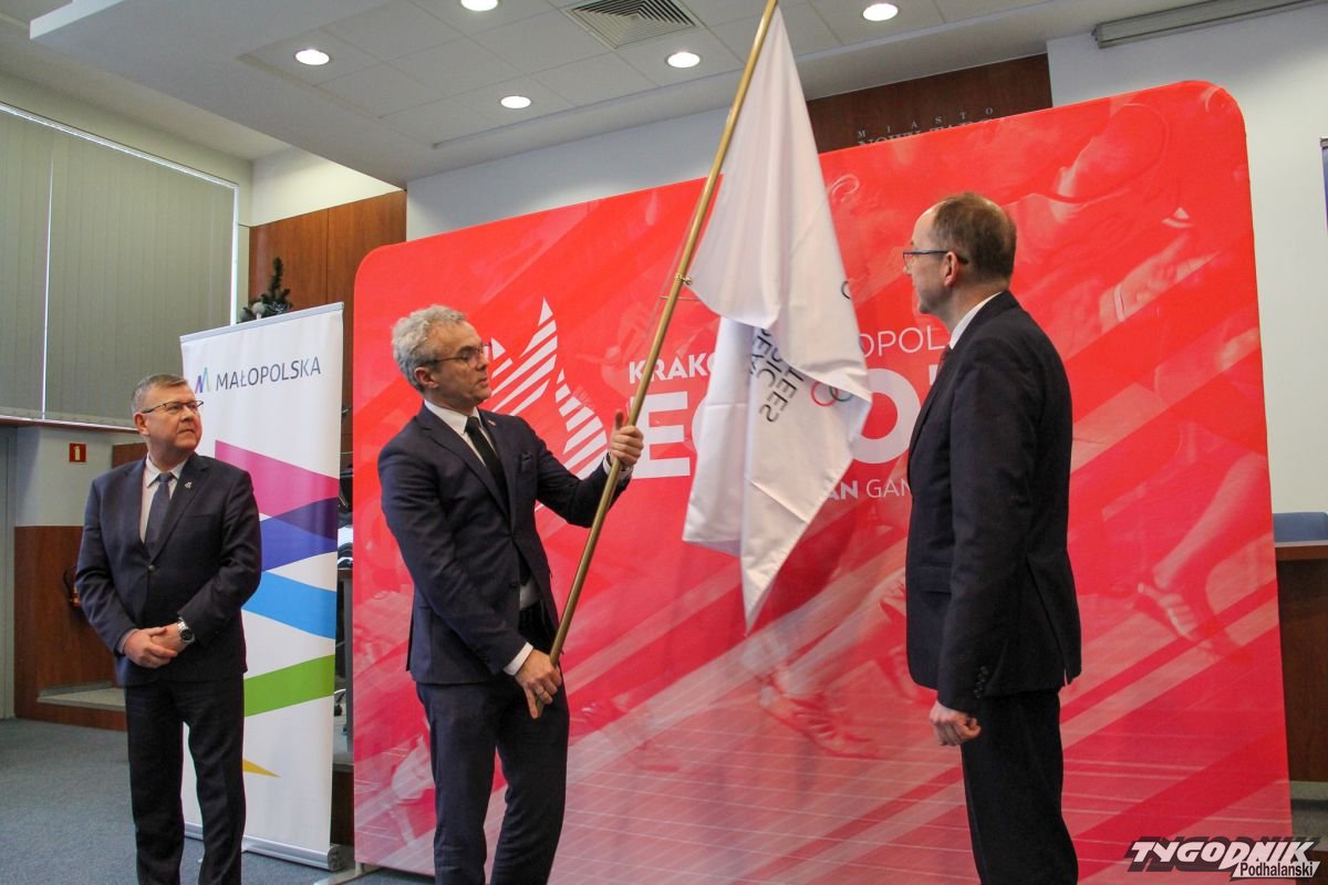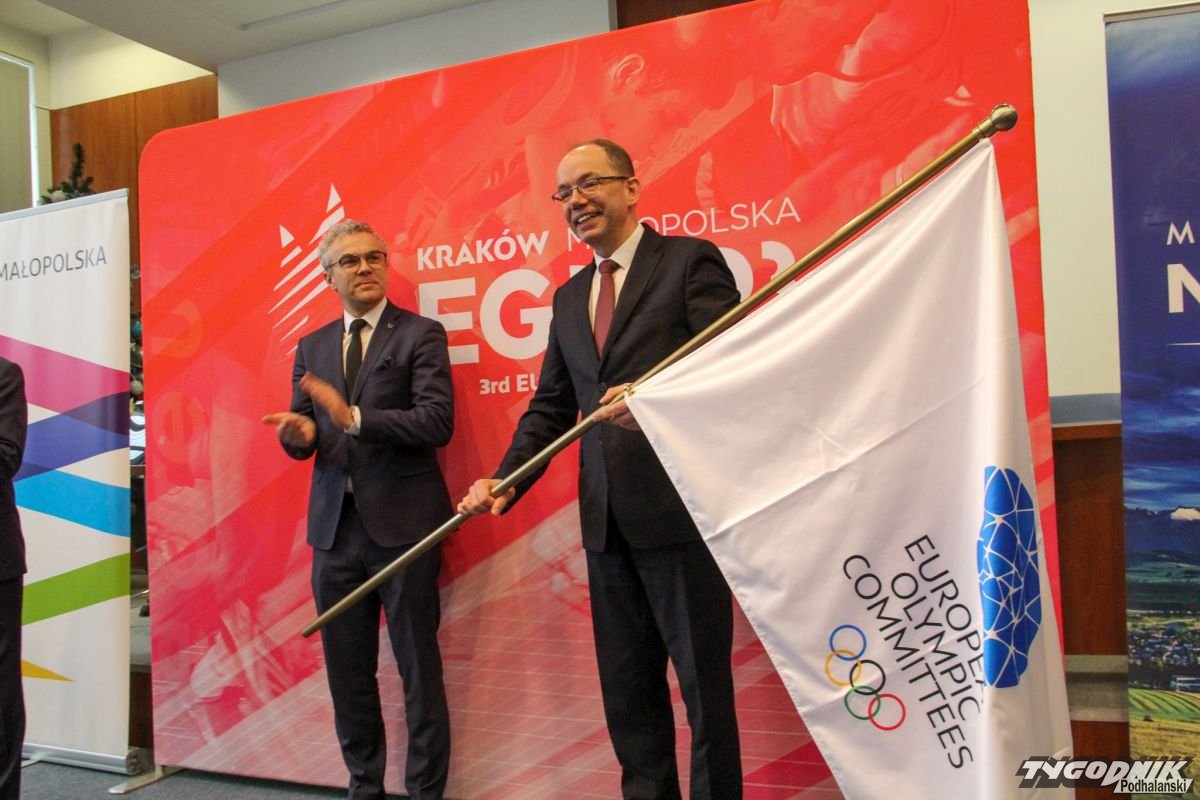 Dziś Witold Kozłowski, marszałek województwa małopolskiego przekazał nowotarżanom sztandar Igrzysk Europejskich, które rozgrywać się będą w tym roku na arenach sportowych Małopolski. Jedną z nich będzie nowotarska hala lodowa, która tym razem zamieni się w bokserski ring. Będą to prestiżowe i ważne zawody, bo pięściarze rywalizować będą dodatkowo o 44 kwalifikacje do igrzysk olimpijskich w Paryżu.