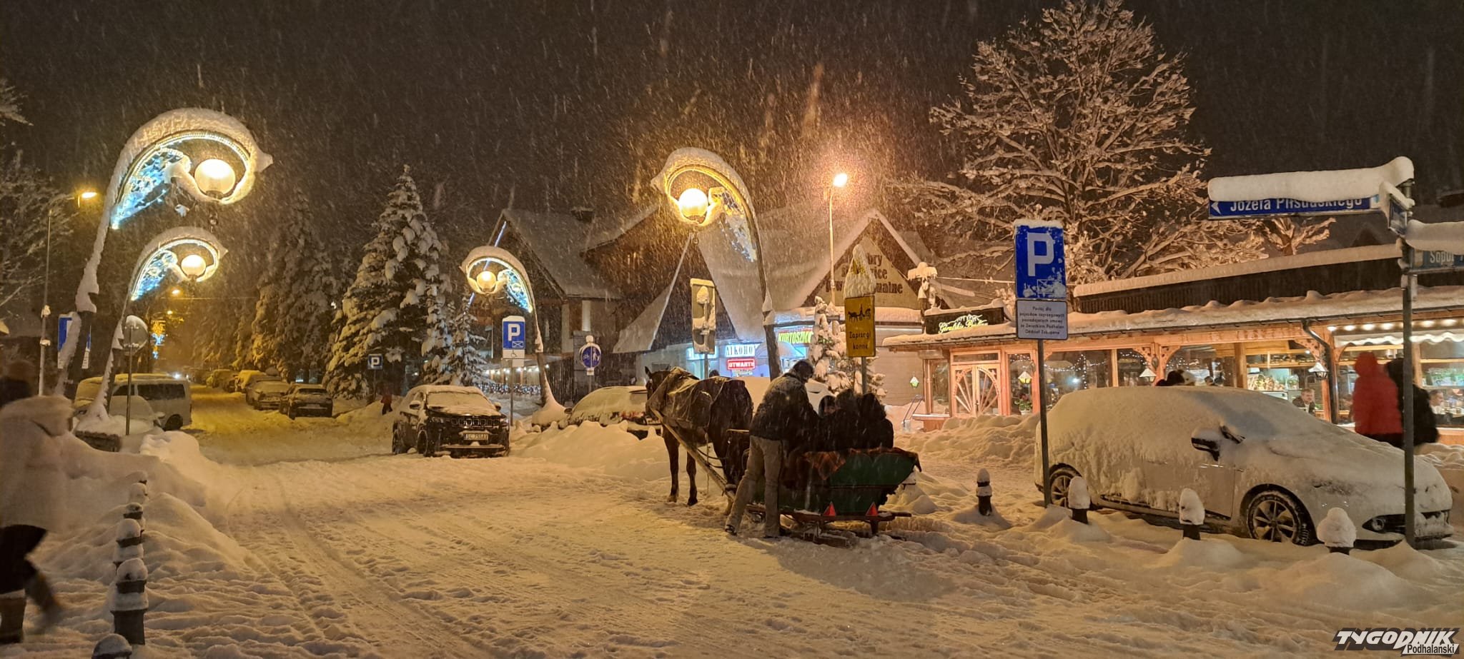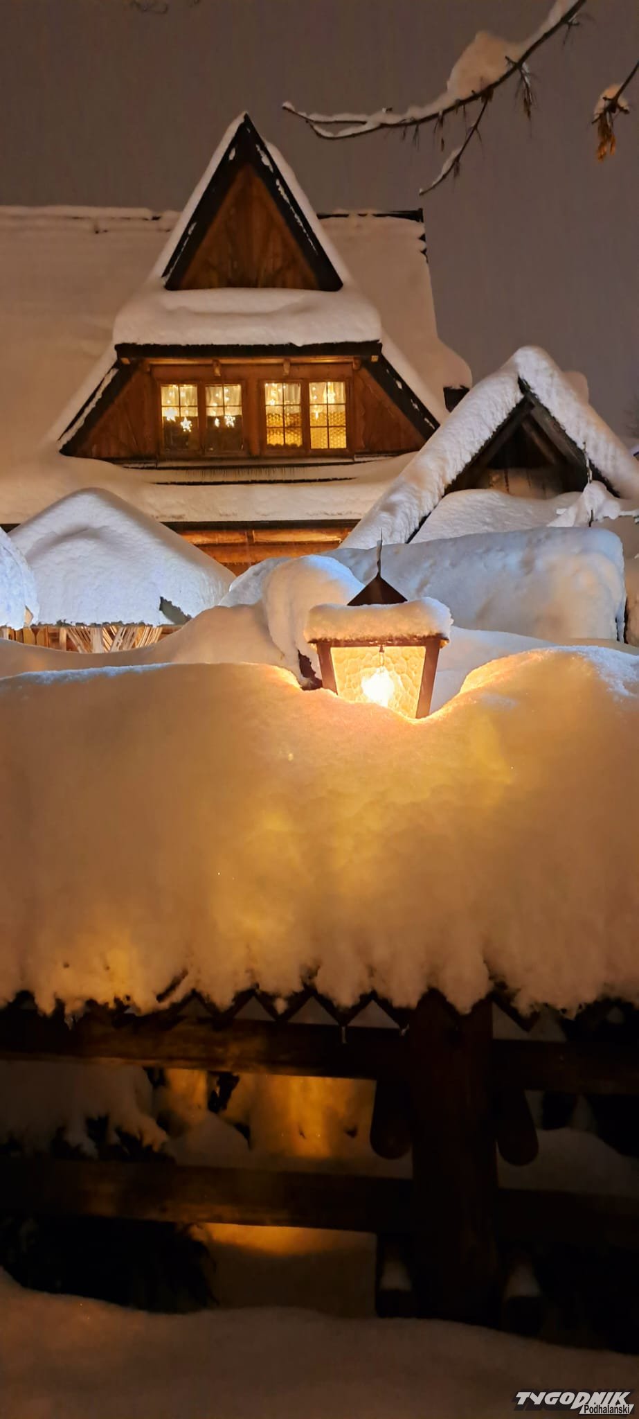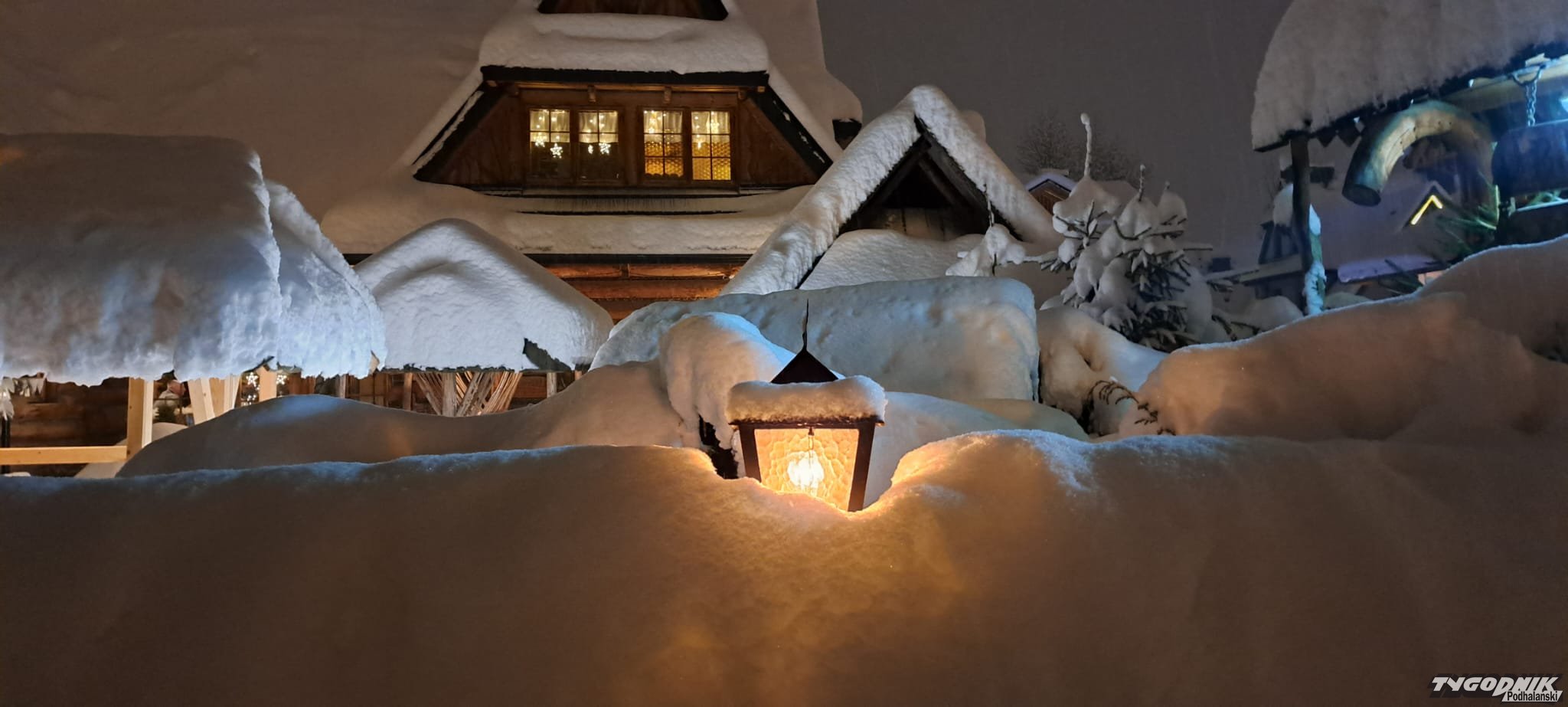 Piękne Zakopane wieczorową porą. Prawie pół metra śniegu (WIDEO)