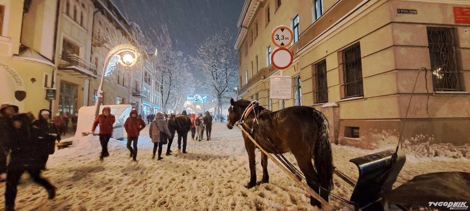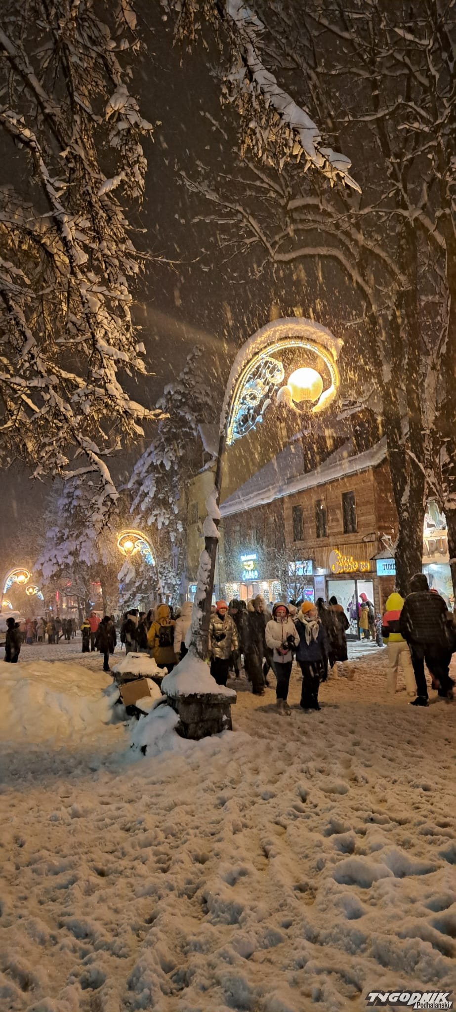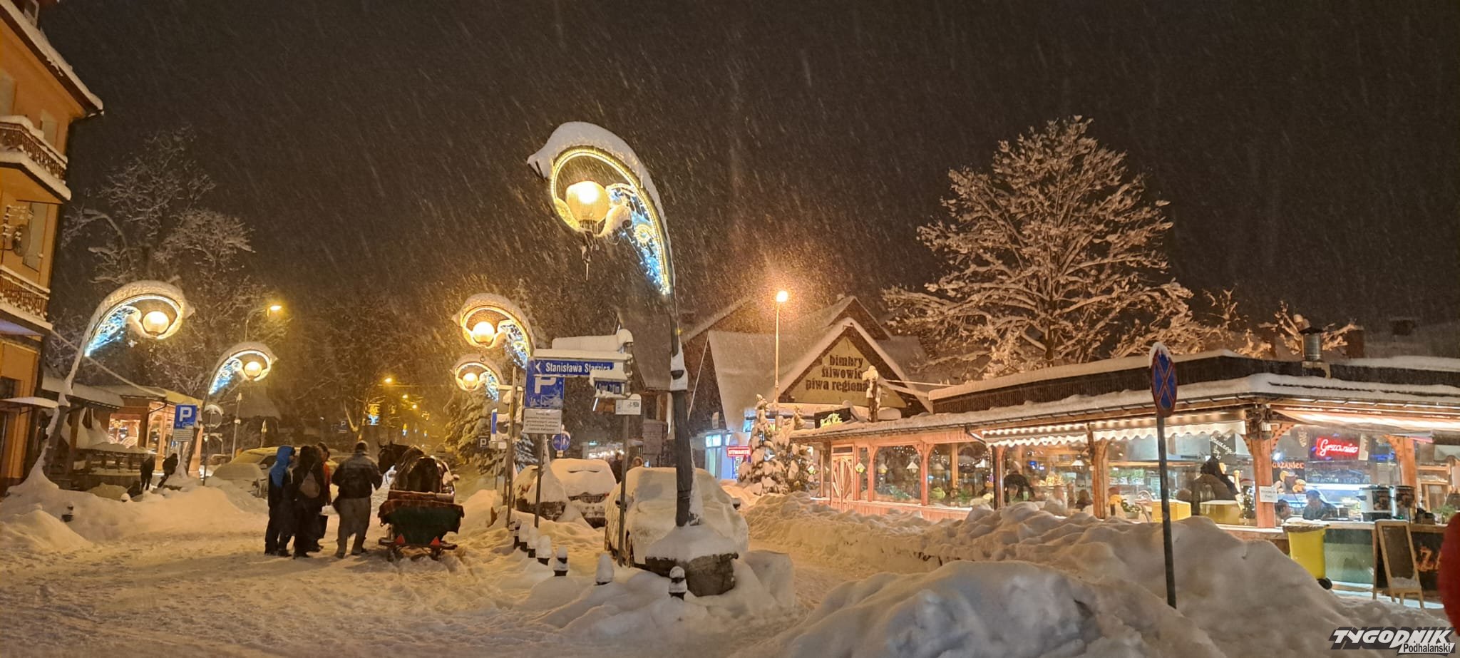 Piękne Zakopane wieczorową porą. Prawie pół metra śniegu (WIDEO)