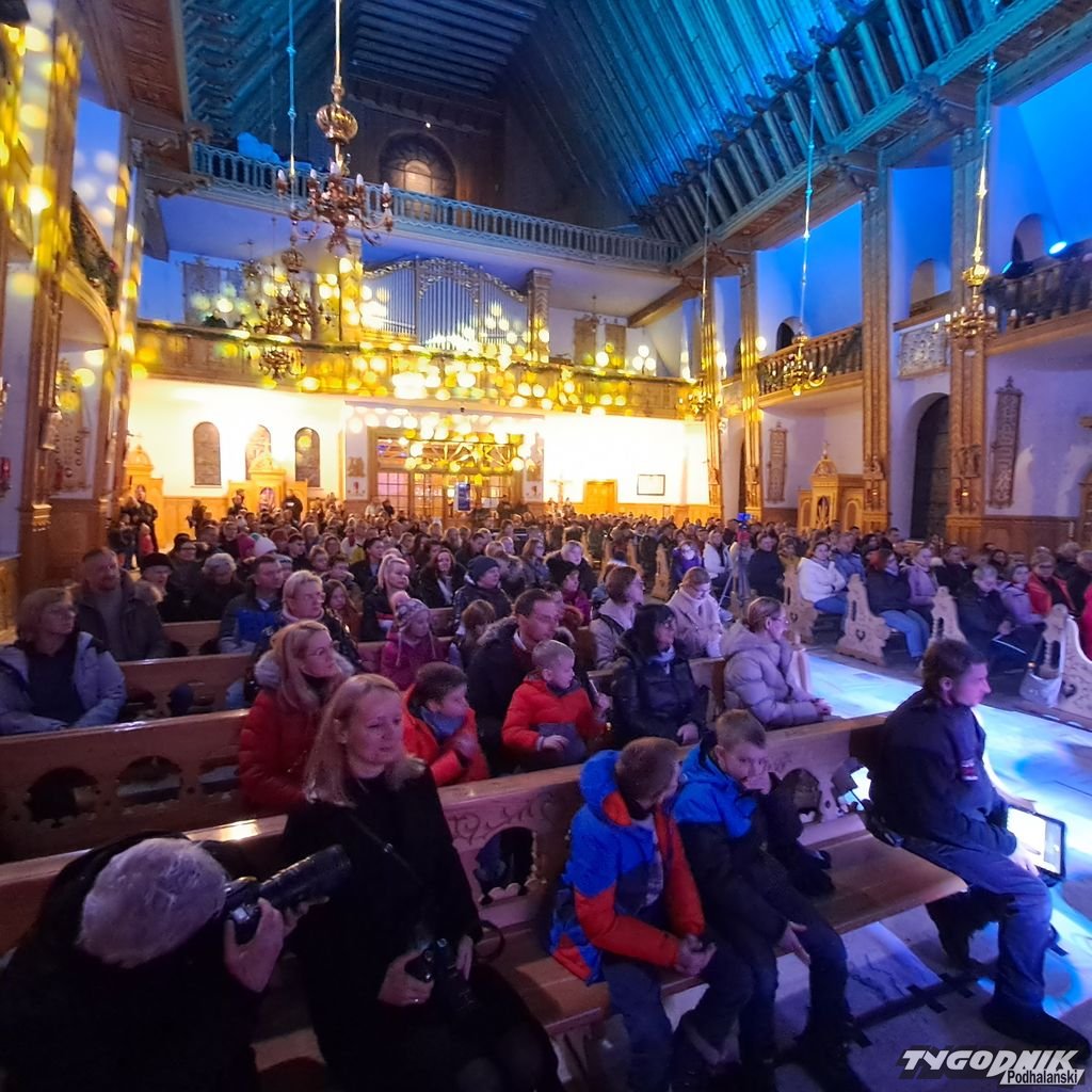Wnętrze kościoła na Krupówkach wypełniła nie tylko świetnie zaśpiewana i zagrana muzyka świąteczna, ale także była ciekawa gra świateł. Publiczność oczywiście na zakończenie w pozycji stojącej wyklaskała bis.