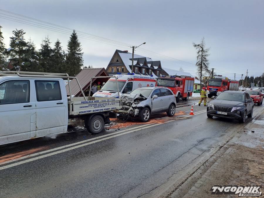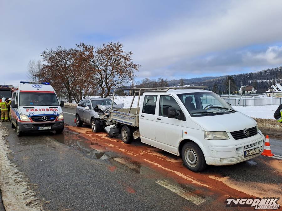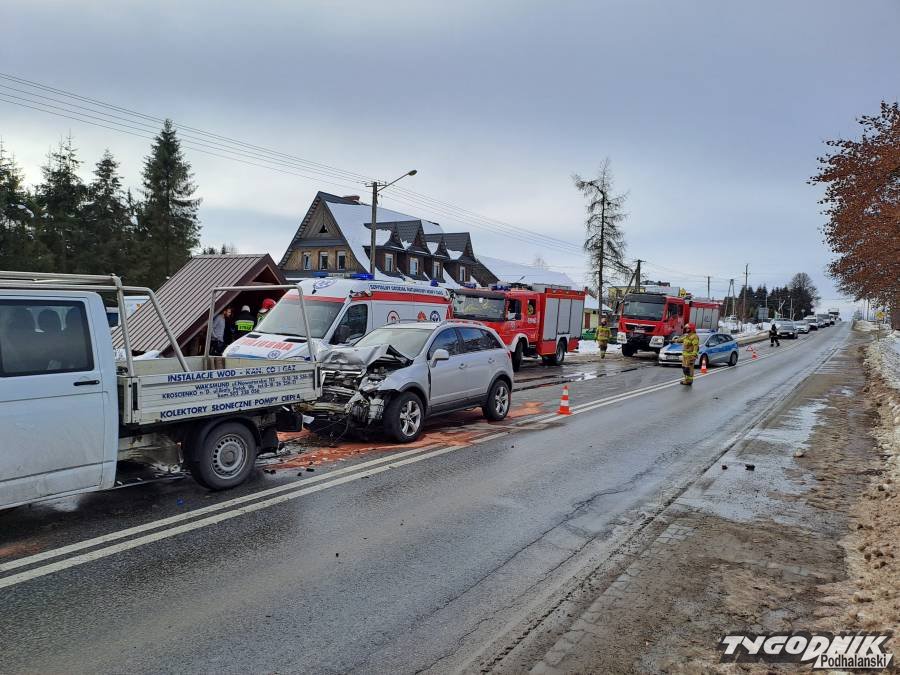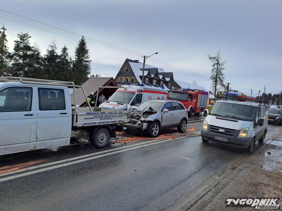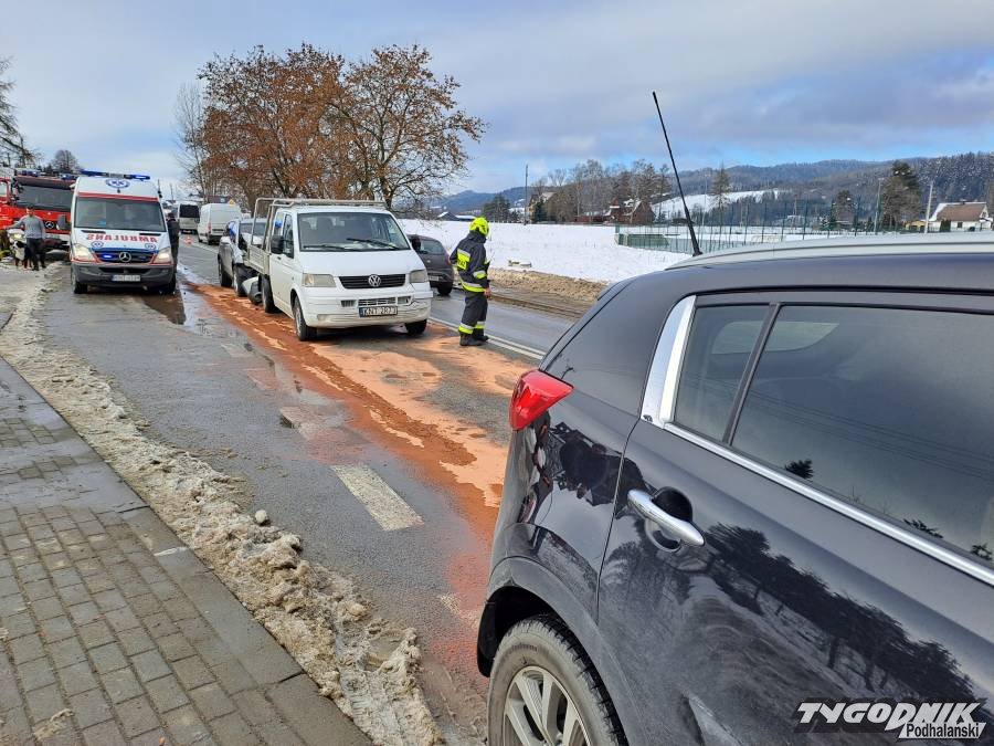Wypadek zdarzył się przy wjeździe do Łopusznej od strony Ostrowska w rejonie przejścia dla pieszych. W zderzeniu brały udział trzy samochody: dwie osobówki i dostawczak. Auta jechały w tym samym kierunku. Doszło do klasycznego najechania na tył poprzedniego samochodu. Na miejscu jest karetka, której załoga opatruje poszkodowanych - na szczęście urazy okazały się niegroźne. Ruch w miejscu wypadku odbywa się wahadłowo. Na miejscu pracują strażacy i policjanci.