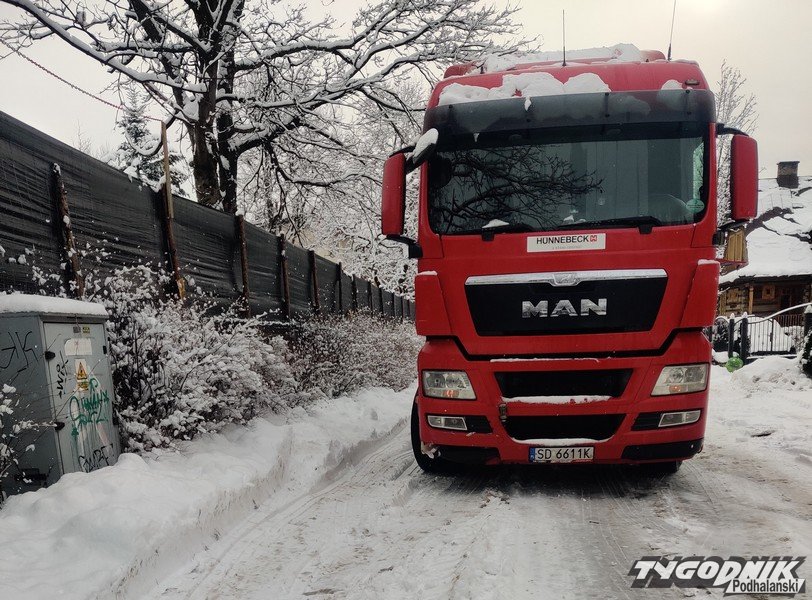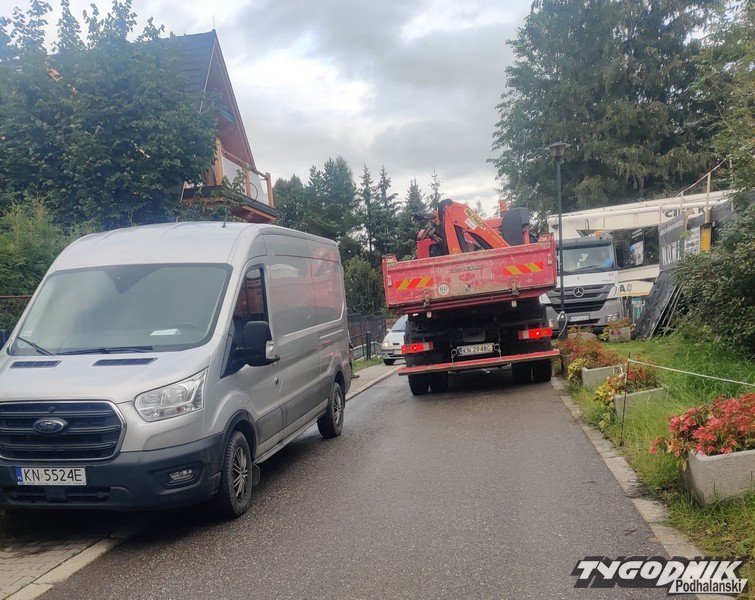 Mieszkańcy ulicy Modrzejewskiej w Zakopanem są już umęczeni, wielkie pojazdy od miesięcy blokują im jedyną drogę do domów.
