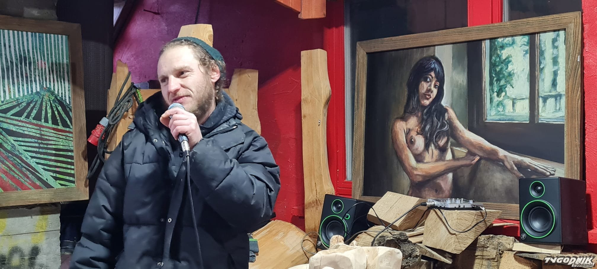 Karol Drewniak, artysta z Bieszczad uświetnił krótkim koncertem muzyki reggae jednodniową, plenerową wystawę prac Dawida Kędzierskiego, która odbyła się w przestrzeni jego pracowni przy ul. Doroty w Nowym Targu. Muzyka rodem z Jamajki ma naprawdę moc rozgrzewającą, o czym przekonali się goście pracowni Inversja. Gorzej od ludzi z mroźną aurą radził sobie sprzęt.