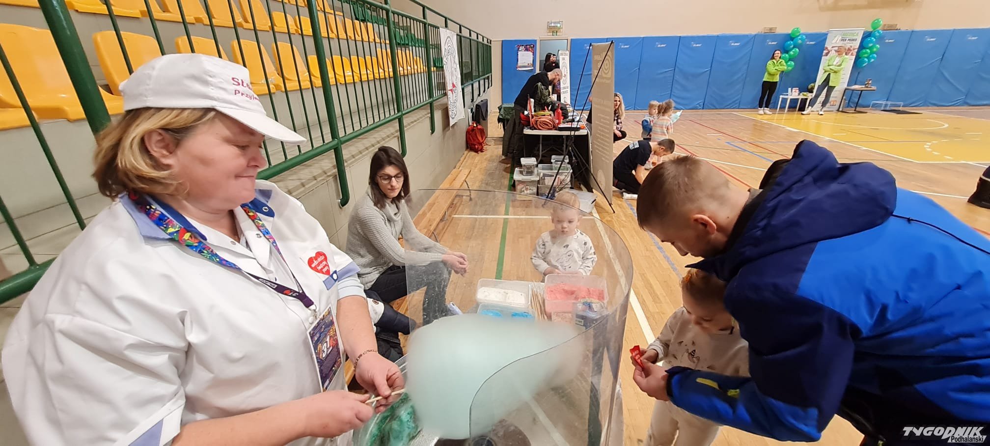 Małgorzata Kicmal pojawiła się w Hali Gorce z 10 kilogramami cukru i sprzętem do robienia waty cukrowej. Każdy kto kupił u niej ten przysmak wspierał WOŚP. Bo cały dochód dzisiaj wpadał do puszki. Przed budynkiem Hali Gorce strażacy z OSP Nowy Targ prezentowali chętnym dzieciakom sprzęt. Wodne Ochotnicze Pogotowie Ratunkowe uczyło jak udzielić pierwszej pomocy.