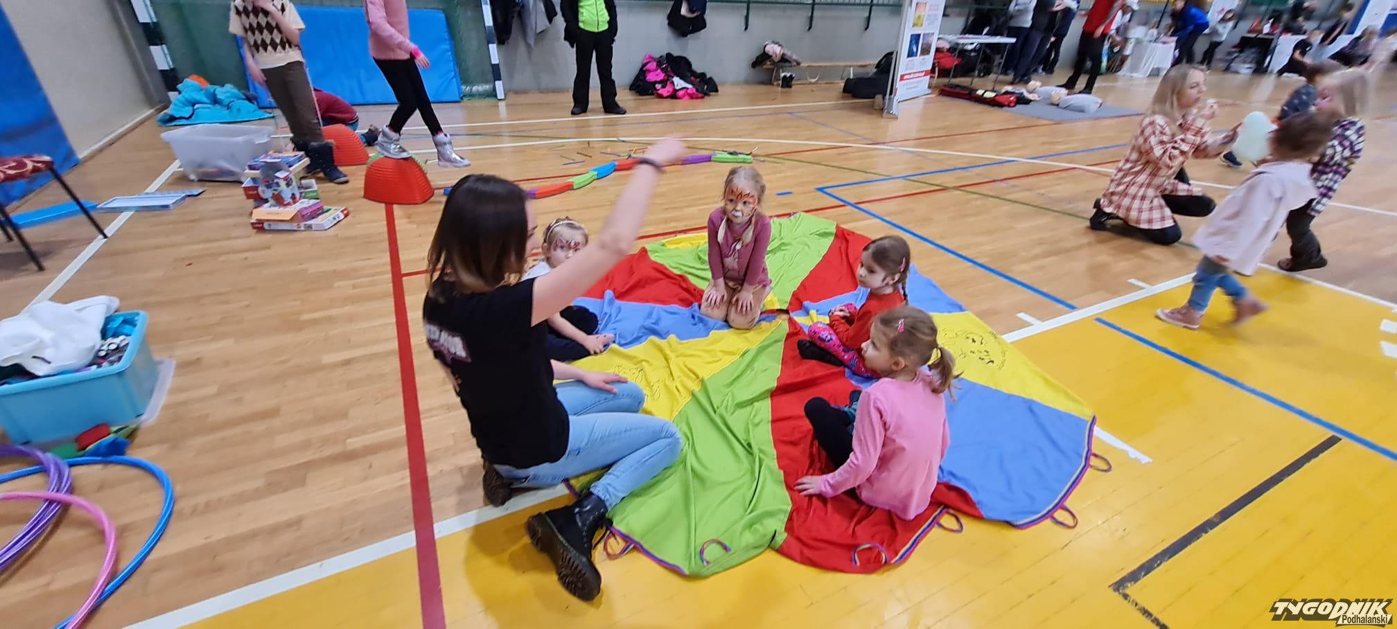 Atrakcje dla maluchów. Porady podologa. Nauka udzielania pierwszej pomocy. W Hali Gorce dzisiaj gwarnie i wesoło.