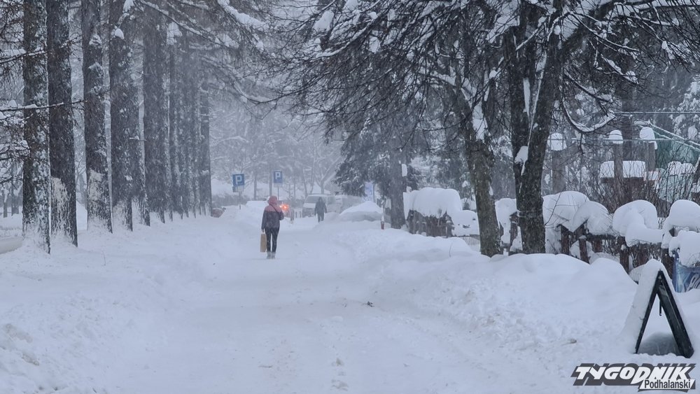 W Zakopanem dosypało śniegu. Silny wiatr (WIDEO)