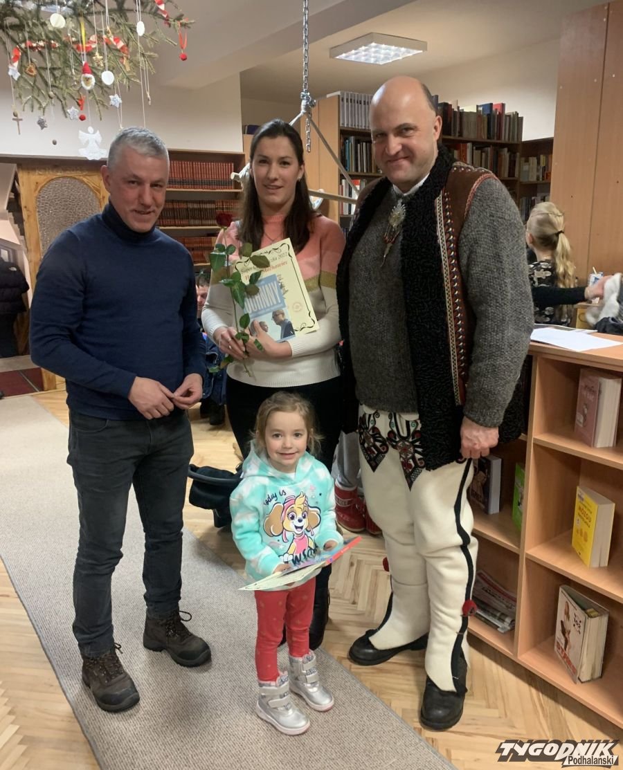 Wyniki poznaliśmy w poniedziałek 23.01. Tego dnia w trakcie spotkania w Bibliotece nagrody odebrali zwycięzcy, których ogłosili promujący tegoroczną edycję konkursu państwo Maria i Stanisław Toporowie z Gliczarowa wraz z wnuczką Asią. W wydarzeniu wzięły też udział panie z Klubu Senior 60+ w Białym Dunajcu.