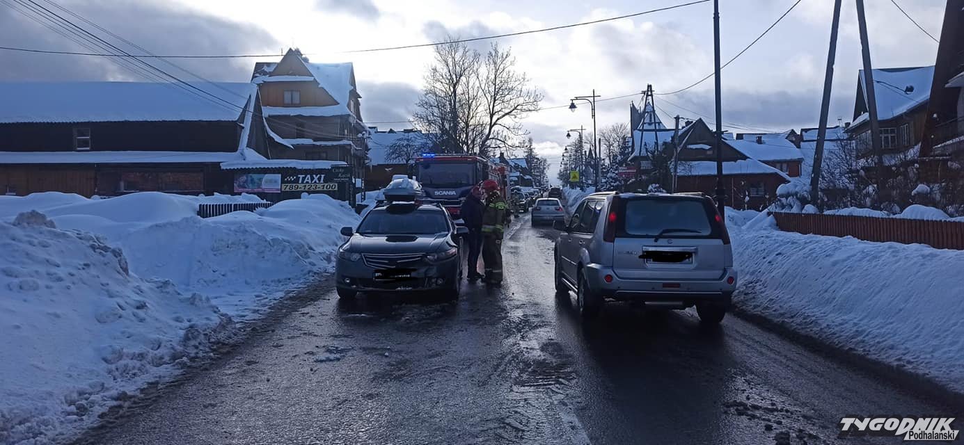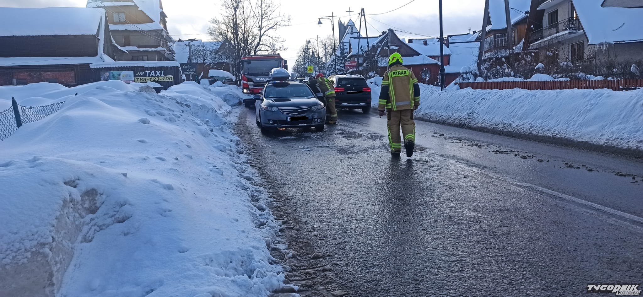 Zderzenie miało miejsce na ul. Długiej w Bukowinie. W kolizji nikt na szczęście nie ucierpiał. Na miejscu byli strażacy z Zakopanego, OSP Bukowina Tatrzańska i policjanci. Występowały utrudnienia w ruchu.