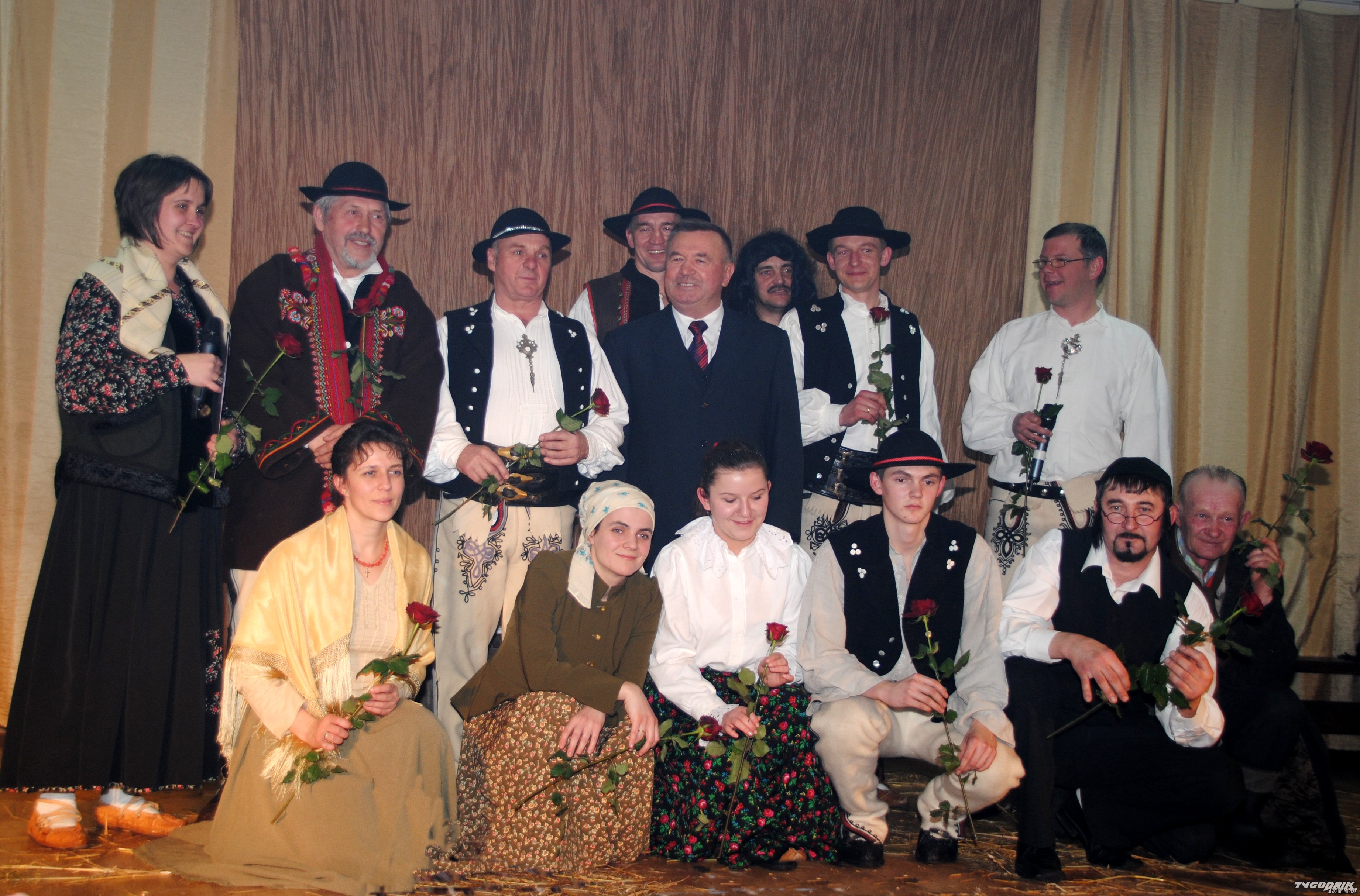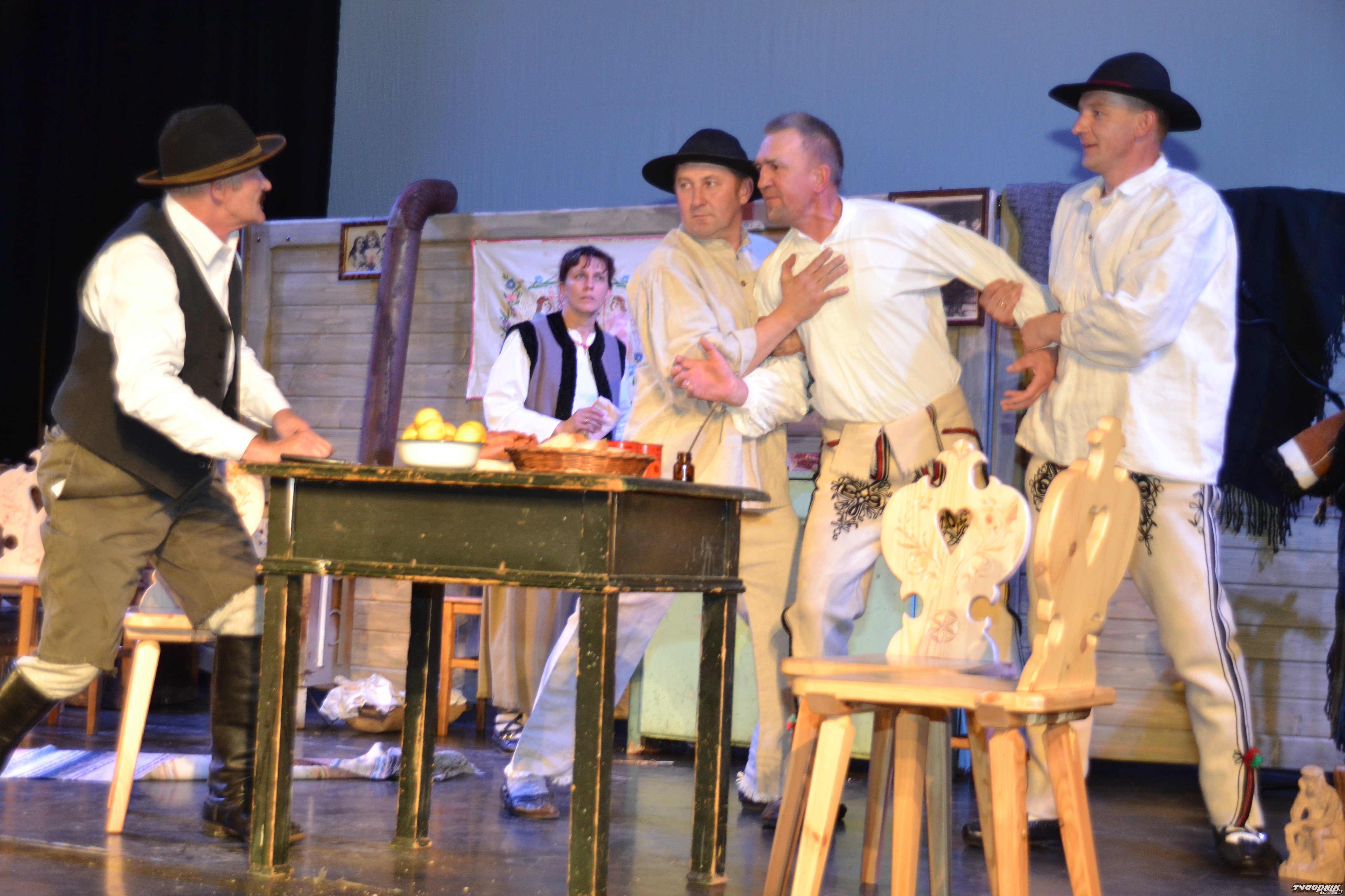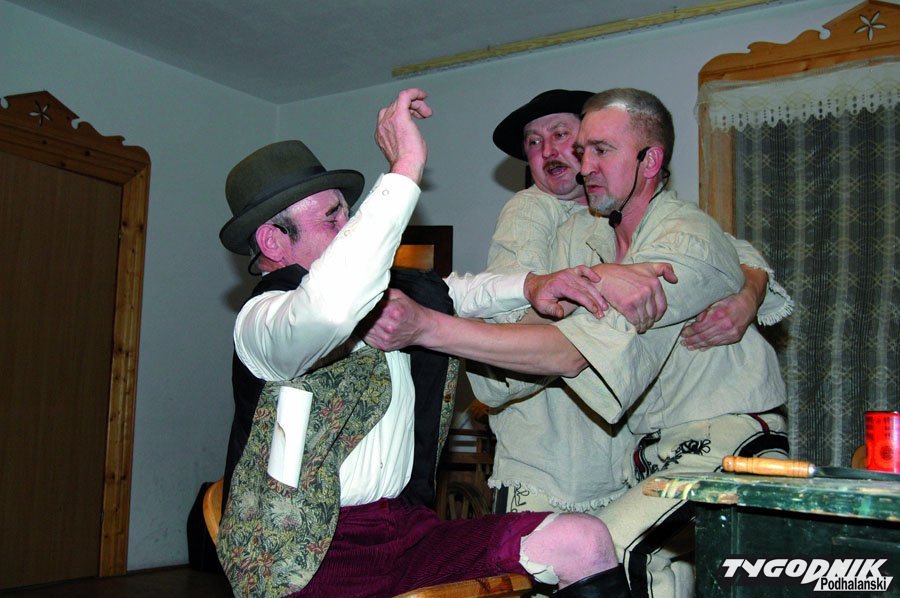 Działająca dziś Orawska Grupa Teatralna im. dr Emila Kowalczyka z Lipnicy Wielkiej wpisuje się w tę tradycję świetnie. Zaczęli swoją działalność 15 lat temu. - Spotkaliśmy się po śmierci mojego taty - Emila Kowalczyka, bo chcieliśmy wystawić jego sztukę "Wolorze" - opowiada Robert Kowalczyk, syn orawskiego poety, społecznika i samorządowca. Sztuka o wypasie wołów pod Babią Górą była obszerna i niełatwa, przerosła możliwości kilku wtedy zapaleńców. Dlatego Robert napisał jednoaktówkę "W karczmie u Strausski". Zagrali w niej sami mężczyźni. Orawska publiczność była zachwycona, to zachęciło aktorów i reżysera do dalszej przygody z teatrem. Do męskiej ekipy dołączyły kobiety. Zaczęli wystawiać kolejne spektakle napisane przez Roberta Kowalczyka. Zawsze były to krótkie przedstawienia gwarowe, z dużą dawką humoru. Przyszła też kolej na niełatwych "Wolorzy". Za każdym razem widownia Domu Ludowego w Lipnicy Wielkiej była wypełniona po brzegi, a bywało, że w ciągu dnia trzeba było grać dwa razy spektakl, by mogli go zobaczyć wszyscy chętni. Orawskich aktorów docenili także specjaliści na różnych przeglądach i konkursach, gdzie zdobywali pierwsze miejsca. Dwa razy reprezentowali też południową Polskę na Ogólnopolskim Sejmiku Teatrów Wsi Polskiej w Tarnogrodzie. W ciągu 15 lat wystawili 20 spektakli.