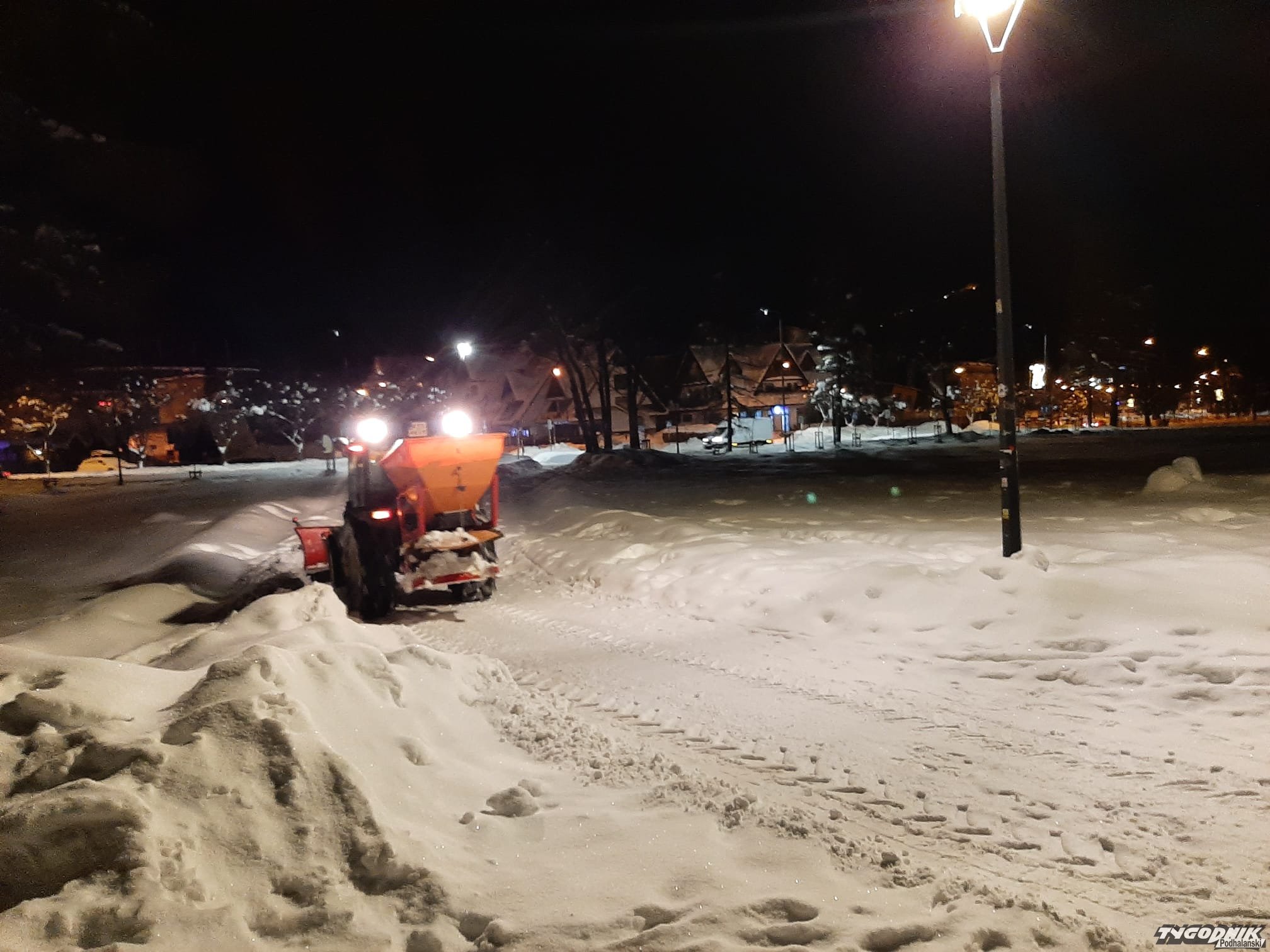 Zakopane piąta rano. Na ulicach pracują już pługi śnieżne. Odśnieżają nie tylko drogi, ale także parkingi. Mijamy dwie maszyny usuwające śnieg pod Watrą. Koparko-ładowarki Tesko udrażniają też alejki na Równi Krupowej. Trzeba się przygotować na nowe dostawy śniegu. Synoptycy zapowiadają kolejne opady i burze śnieżne.