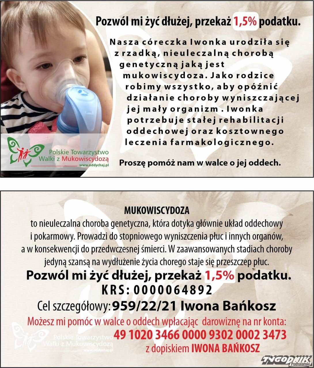 Mała Iwonka, cierpi na mukowiscydozę. Czeka ją kosztowne leczenie i rehabilitacja.