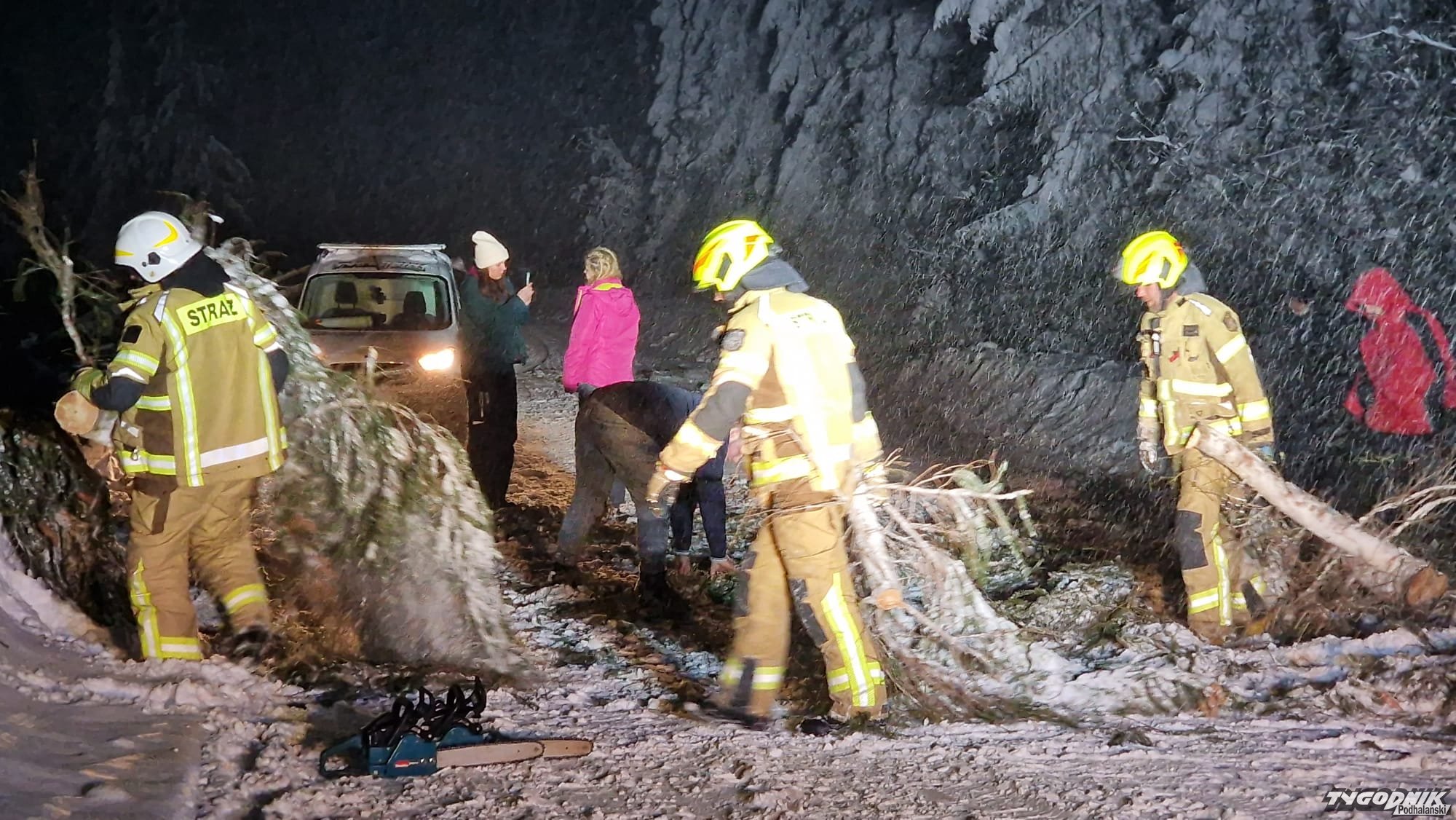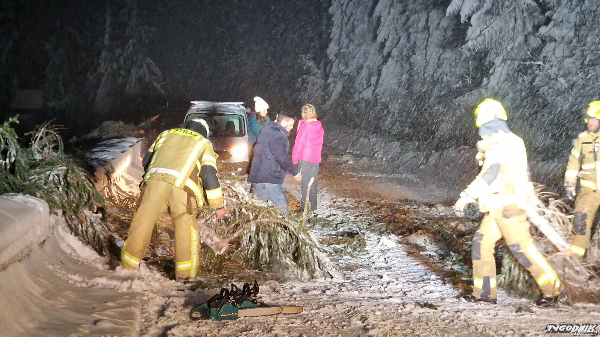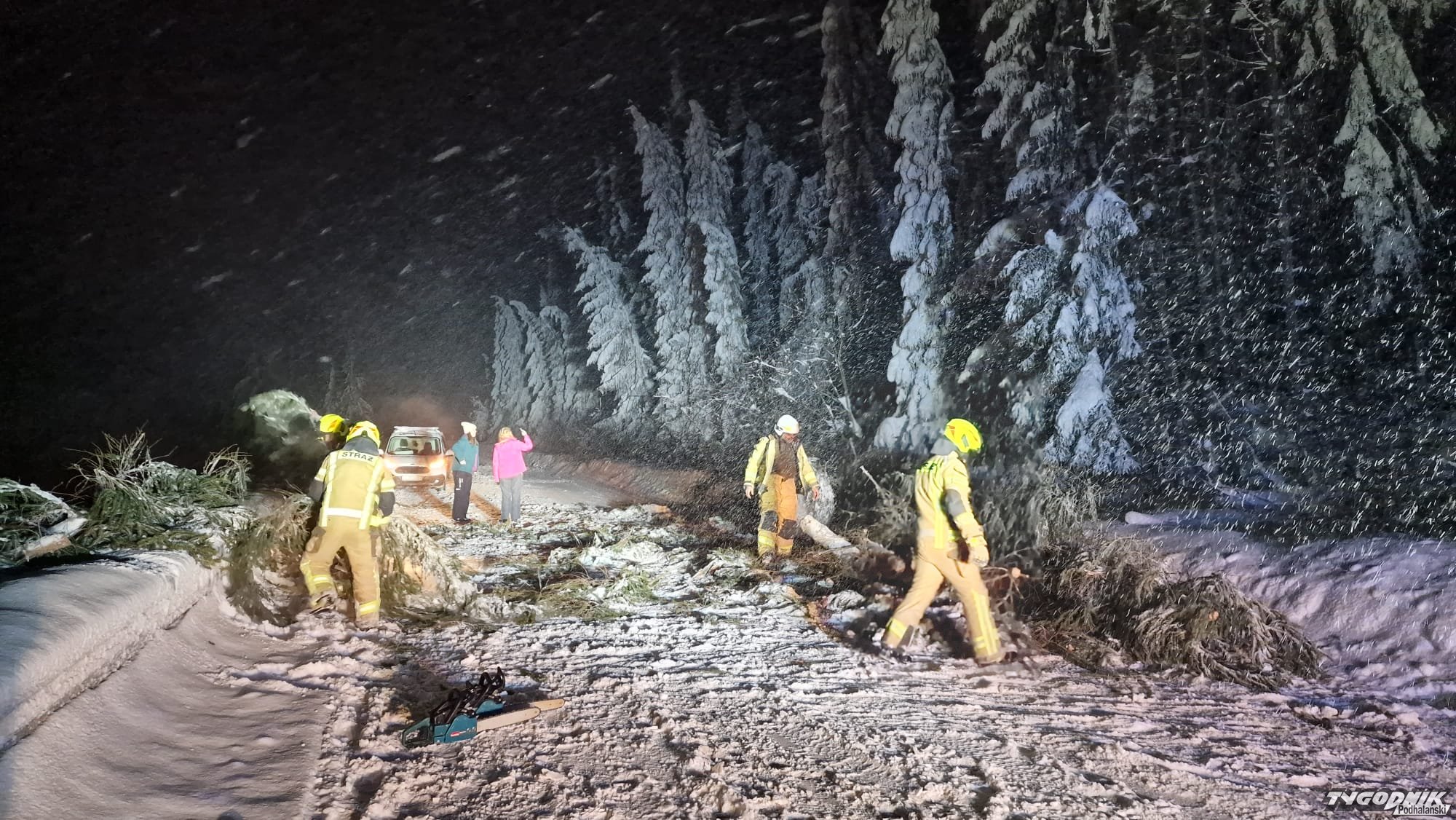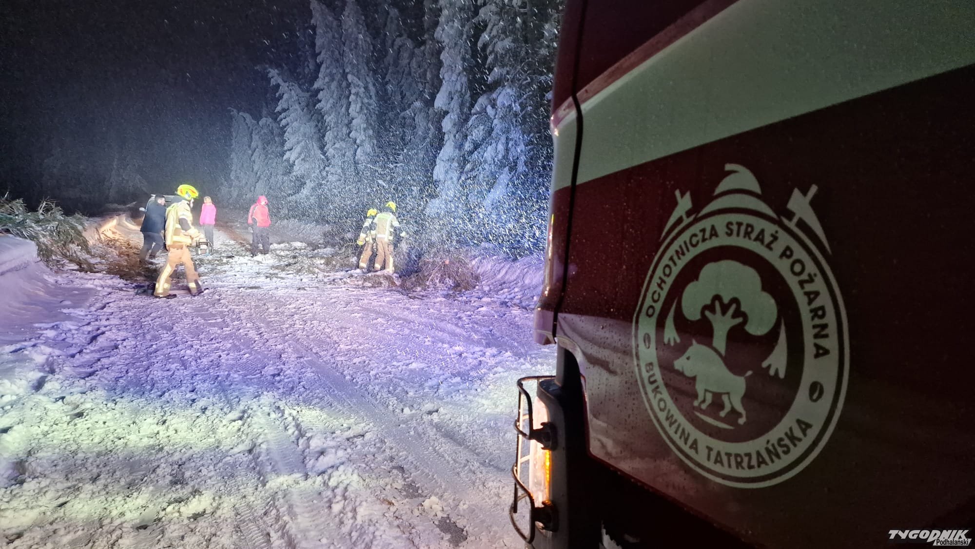 Na miejscu strażacy usuwają. Wcześniej świerk zawalił się na Zazadniej czy bliżej Łysej Polany.