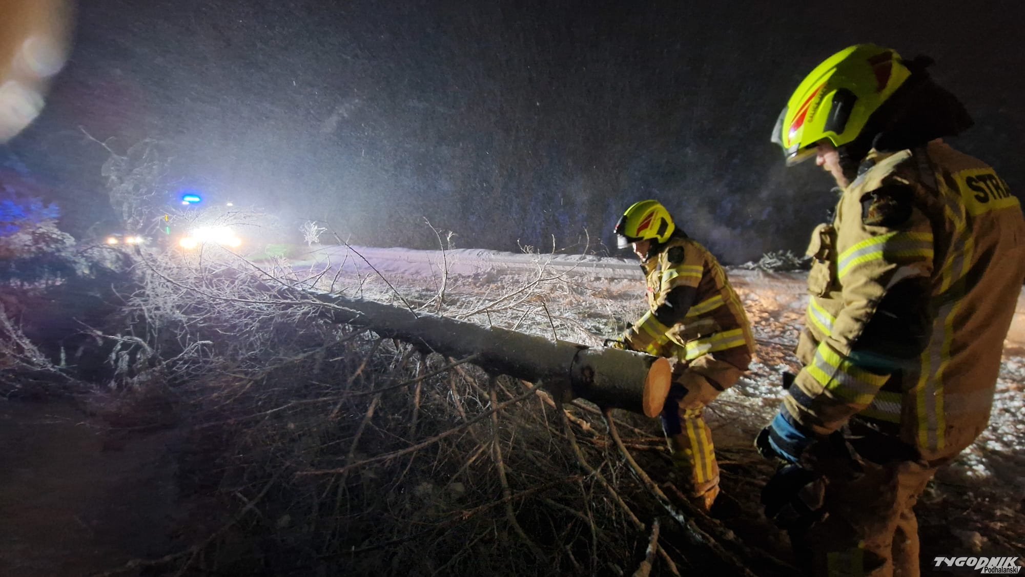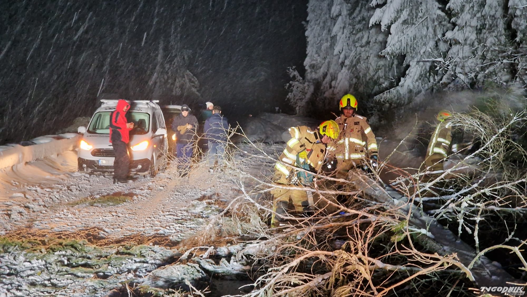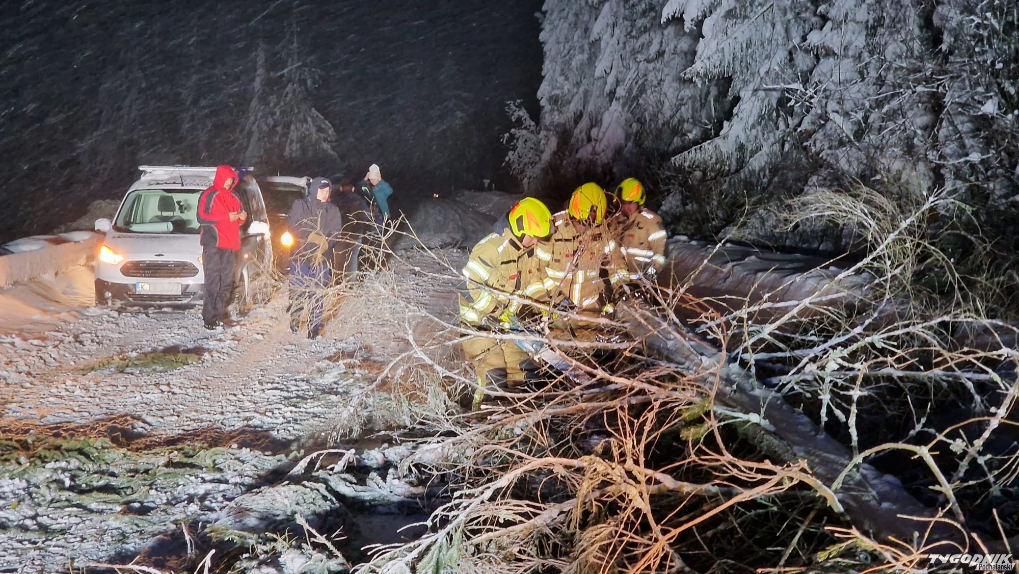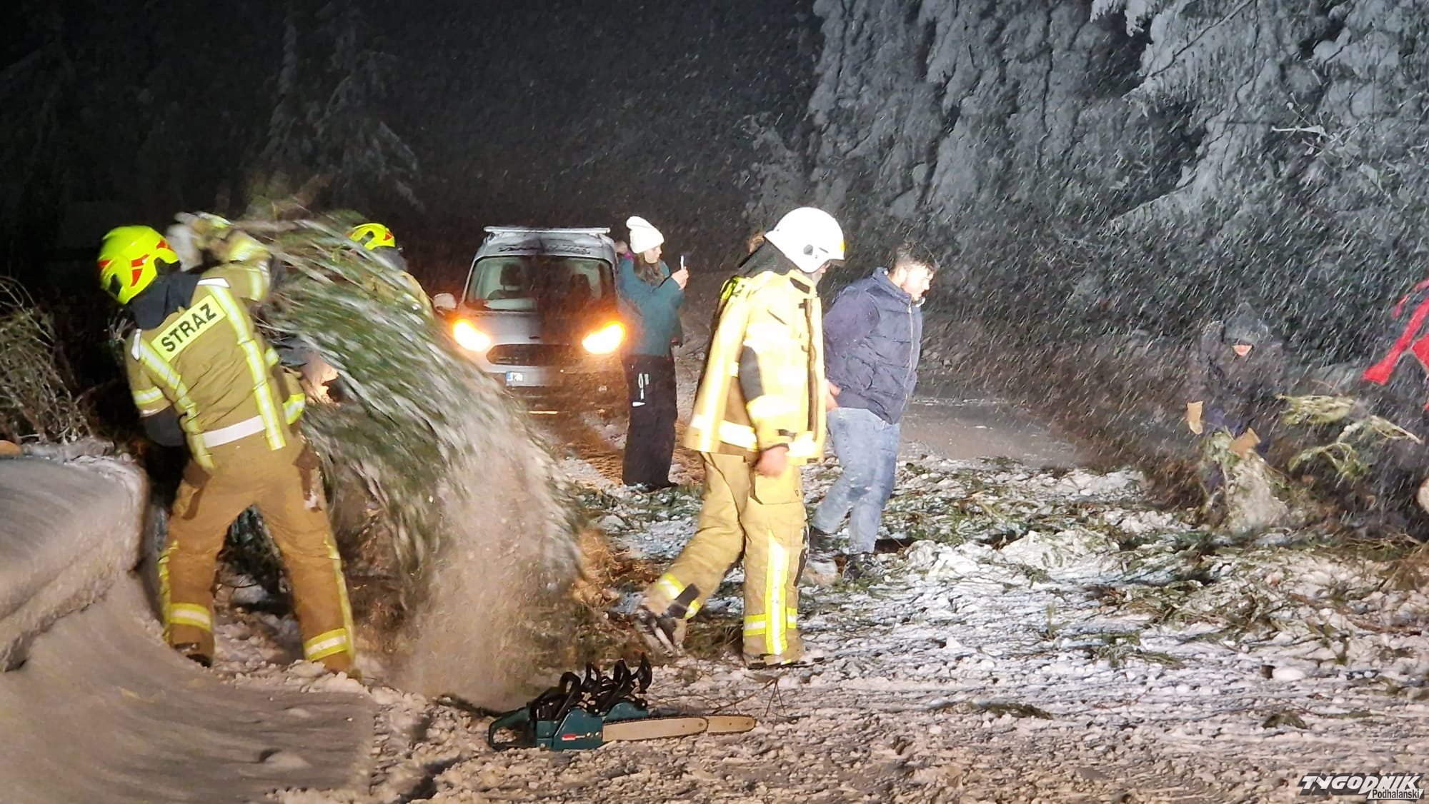 Na miejscu strażacy usuwają. Wcześniej świerk zawalił się na Zazadniej czy bliżej Łysej Polany.