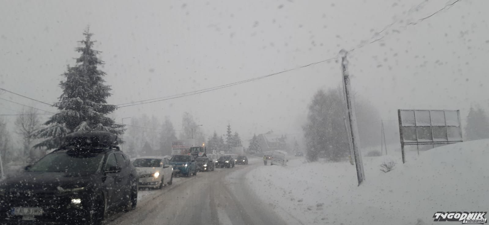 Samochody jadące w kierunku Nowego Targu od strony Białki Tatrzańskiej już zaczynają stać.
