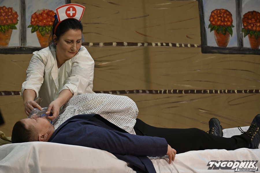O tym, że nie ma lepszej narkozy nad gumowy młotek, a zatrucie gołąbkowe może otrzeć pacjenta o śmierć, przekonali się widzowie najnowszej sztuki zespołu Zielony Jawor pt. "Ostatki u doktora".