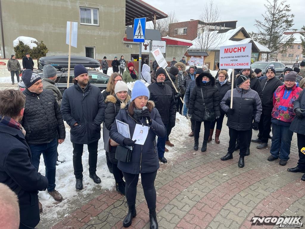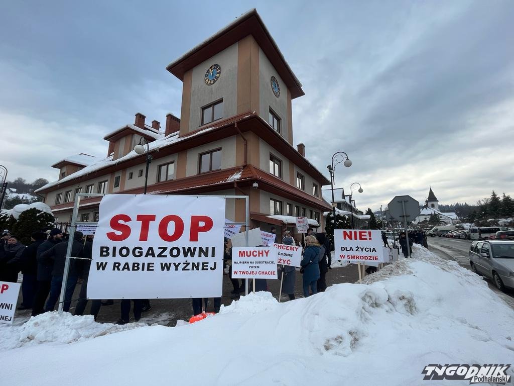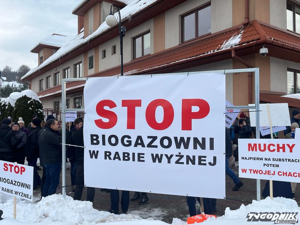 Mieszkańcy sprzeciwiają się planom miejscowego inwestora, który chce niemal w centrum miejscowości zbudować biogazownię. W proteście bierze udział wielu mieszkańców, ponad 400 osób. Z transparentami chodzą po przejściach dla pieszych i blokują ruch.