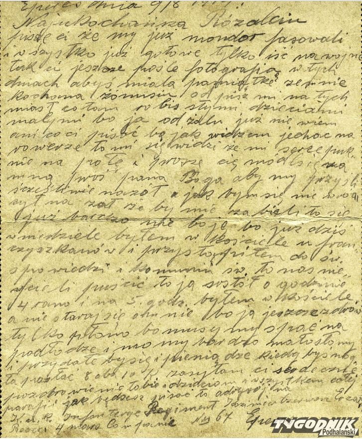 "Bądź zdrowa, kochana żonusiu, bo może już nigdy świata nie uwidzę..." - tak kończy się dziesiąty z 11 listów, które w sierpniu 1914 r. wysłał żonie żołnierz Kazimierz.