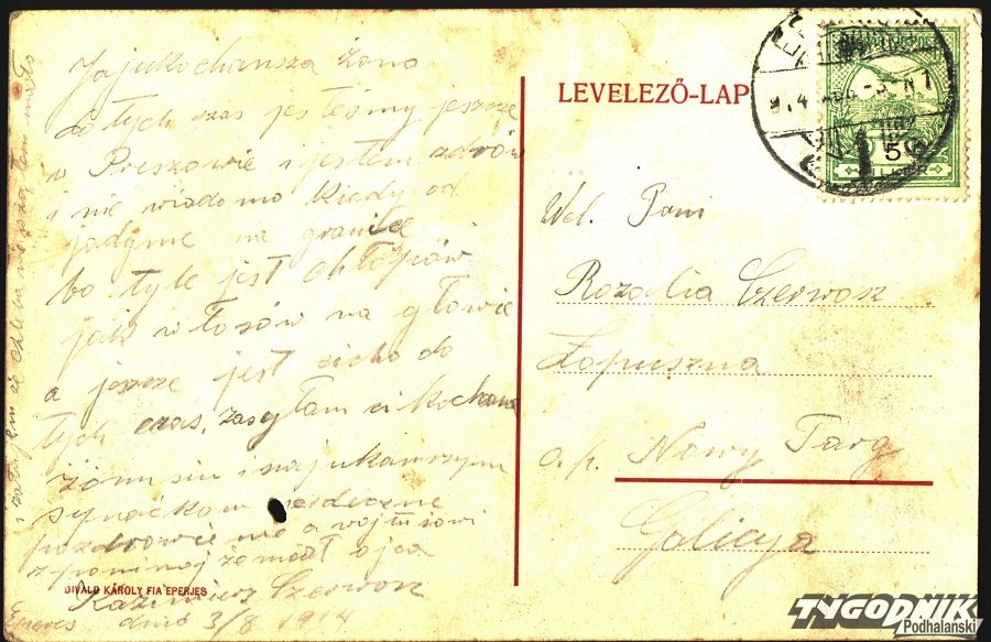 Wchwili wybuchu wojny, która w mgnieniu oka zniszczyła ich poukładany, bezpieczny świat, Czerwoszowie mieli 2synków. Wojtuś skończył 1,5 roku, a Bronek był niemowlęciem. Kazimierza wcielono do wojska węgierskiego już w pierwszym dniu wojny, tj. 1 sierpnia. Regiment formował się w Eperjes (tj. Prešovie). A Rozalia została z dziećmi sama. W listach, które od męża dostawała, czytała, że inne kobiety przychodzą pożegnać się ze swoimi mężami, synami i braćmi, zanim ci odesłani będą na front. Ale ona z powodu opieki nad malcami nie miała nawet i tej możliwości. Bolały ją opisy, że on marznie, śpi na gołej ziemi, że jest głodny. I wzruszały zapewnienia o miłości do niej i dzieci. Z każdym listem dowiadywała się od Kazimierza czegoś nowego. Że z Prešova wyrusza do Koszyc. A potem przez Łupków, Komańczę, Przemyśl i Myślenice do Rawy Ruskiej. W liście z 11 sierpnia znalazła nawet jego fotografię - w świeżo fasowanym mundurze. Z żarliwością kochającej żony i matki prosiła Matkę Bożą o ratunek dla niego. Choć nie byłaby przecież kobietą, gdyby nie czuła, że stanie się jednak coś złego. Słowa kartki z 28 sierpnia: "Jestem już niedaleko granicy i już czujemy jak strzylają z kanonów i już pójdziemy do ognia - 29 sierpnia" - przyprawiły ją o mocne kołatanie i nagły skurcz serca. Zwłaszcza że nie przyszły żadne następne...