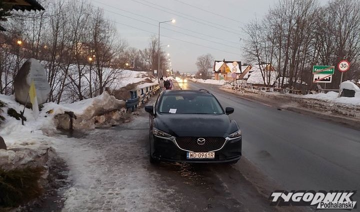 Kilka dni temu pokazywaliśmy samochód zaparkowany na całej szerokości chodnika na ul. Nędzy Kubińca w Kościelisku. Tym razem otrzymaliśmy zdjęcie auta, które zaparkowało na dużej części chodnika tuż przy moście granicznym między Zakopanem a Kościeliskiem. Za wycieraczką ktoś zostawił kartkę, na której napisał: "Tu się nie parkuje, bo to jest chodnik, debilu".