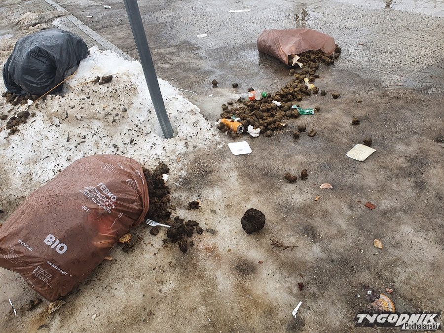 Topniejący śnieg w Zakopanem odsłania śmieci, do tego przywykliśmy przez lata. Butelki po wódce, "małpki", puszki po piwie i opakowania z jedzenia. Zwykła rzecz. Już prawie nie zwracamy na to uwagi. Kto dziś wybrał się na spacer pod Wielką Krokiew mógł natknąć się na końskie bioodpady. Zdjęcia z niedzielnego spaceru w deszczu nadesłała nasza czytelniczka.