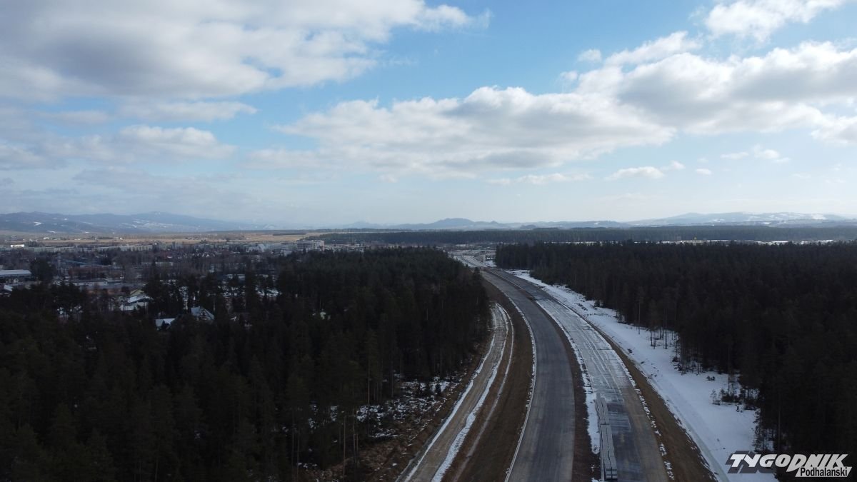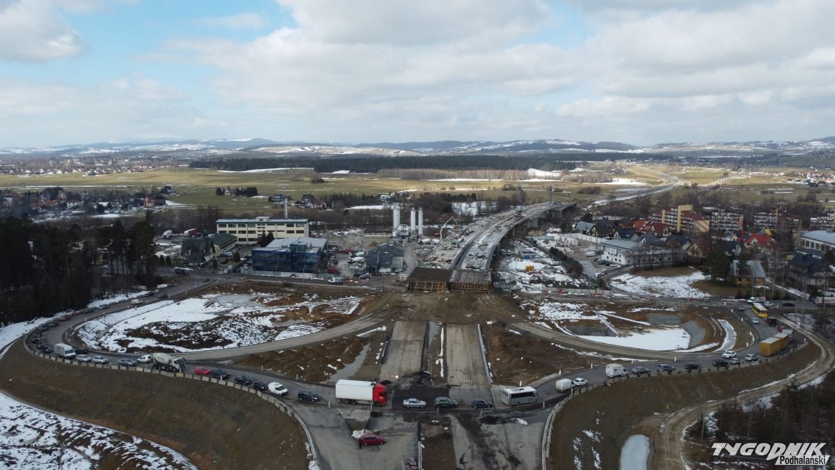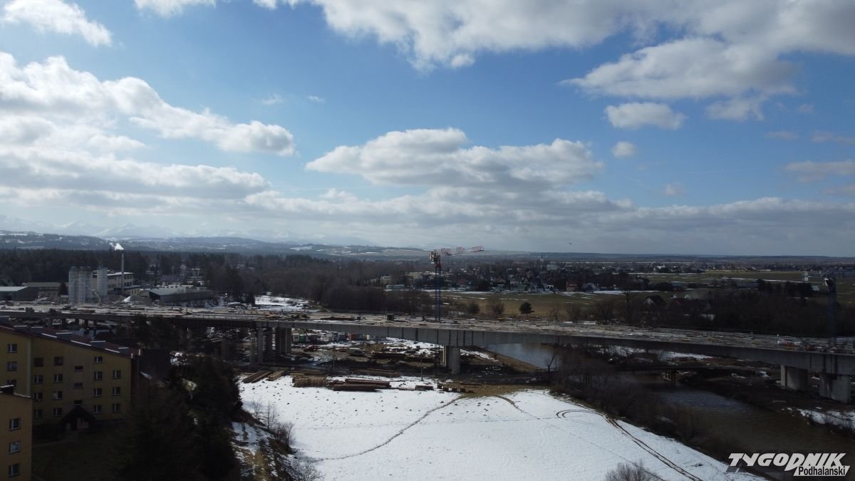 Mimo zimy - prace na nowej zakopiance idą pełną parą. Droga już przechodzi mostem nad Czarnym Dunajcem i estakadą nad ul. Ludźmierską.