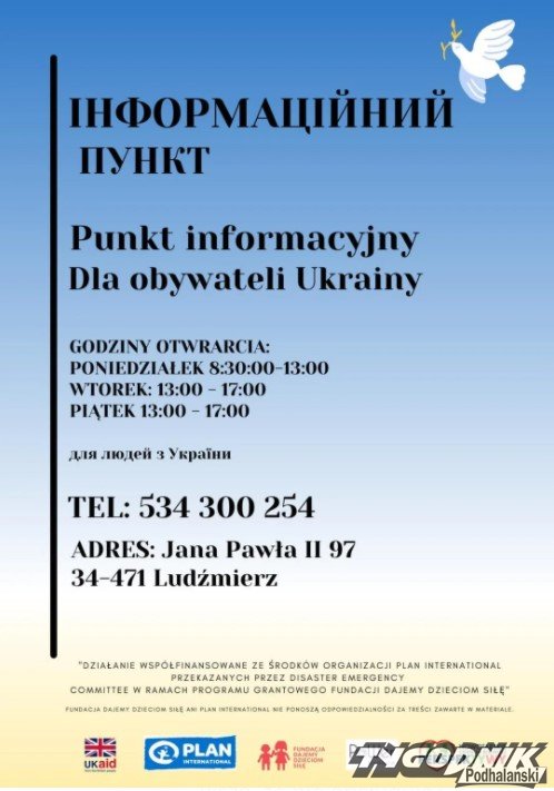 Punkt informacyjny dla obywateli Ukrainy w Ludźmierzu.