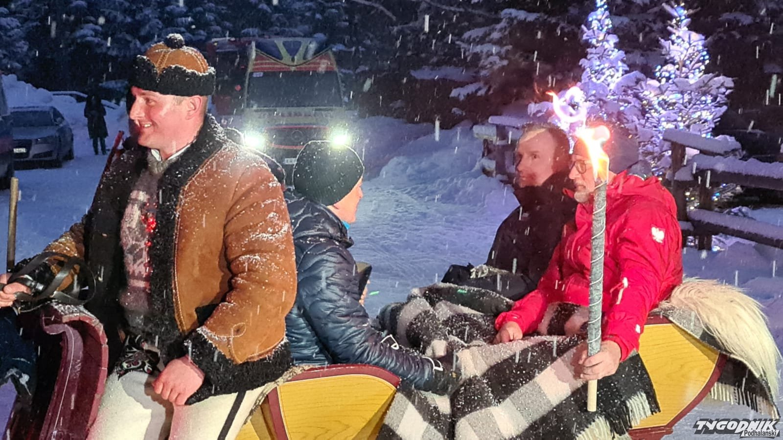 Prezydent na kulig przyjechał samochodem. Mimo mrozu bez czapki (WIDEO)