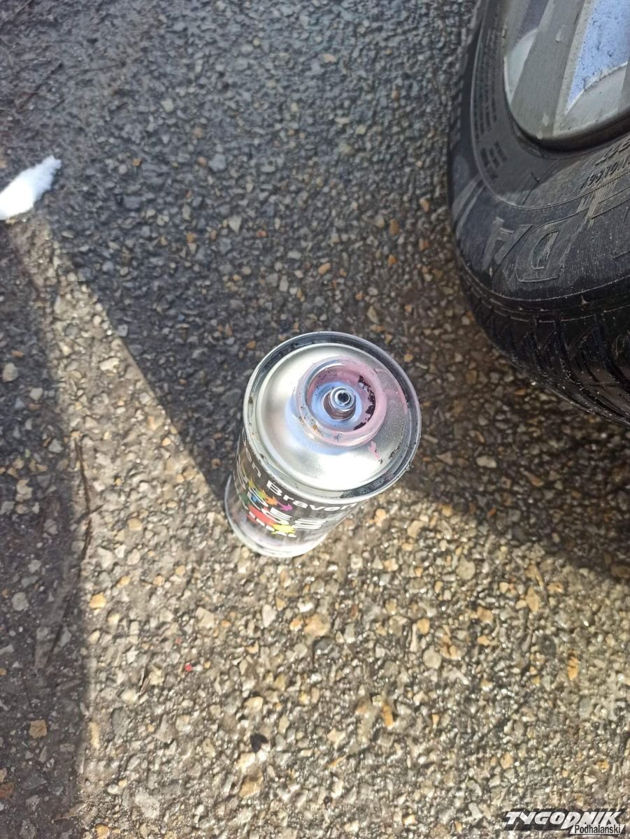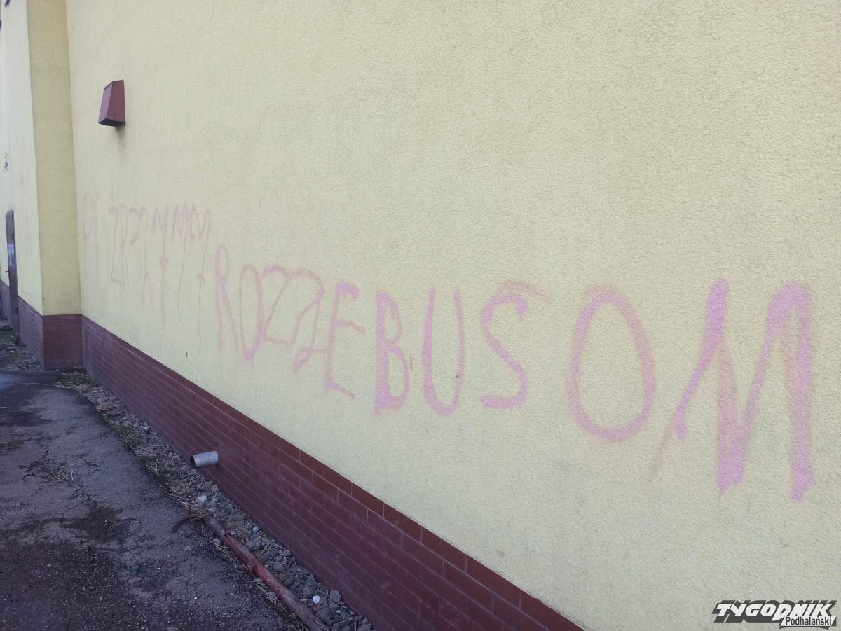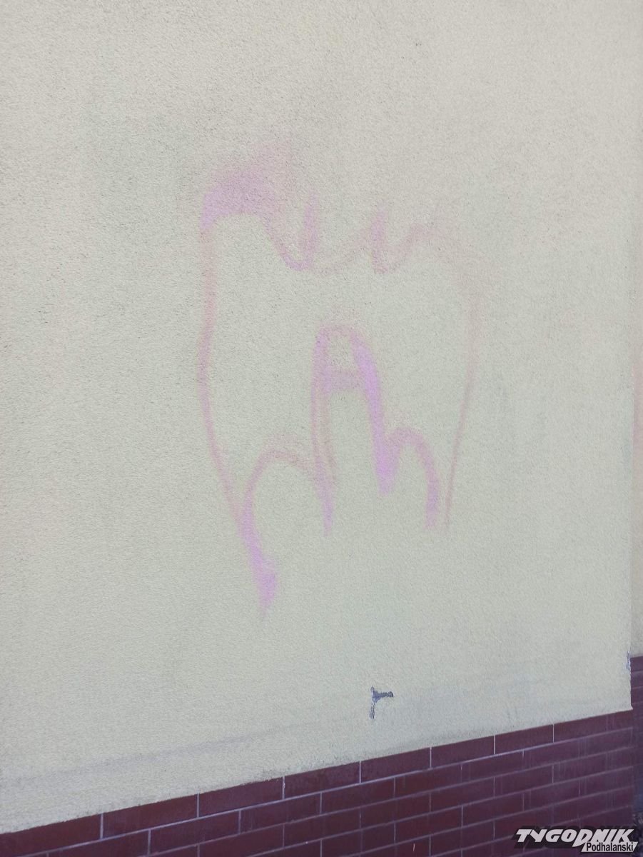 Strażacy OSP Sidzina dają wandalowi czas do jutra, żeby sam się zgłosił i wyczyścił zniszczoną elewację.