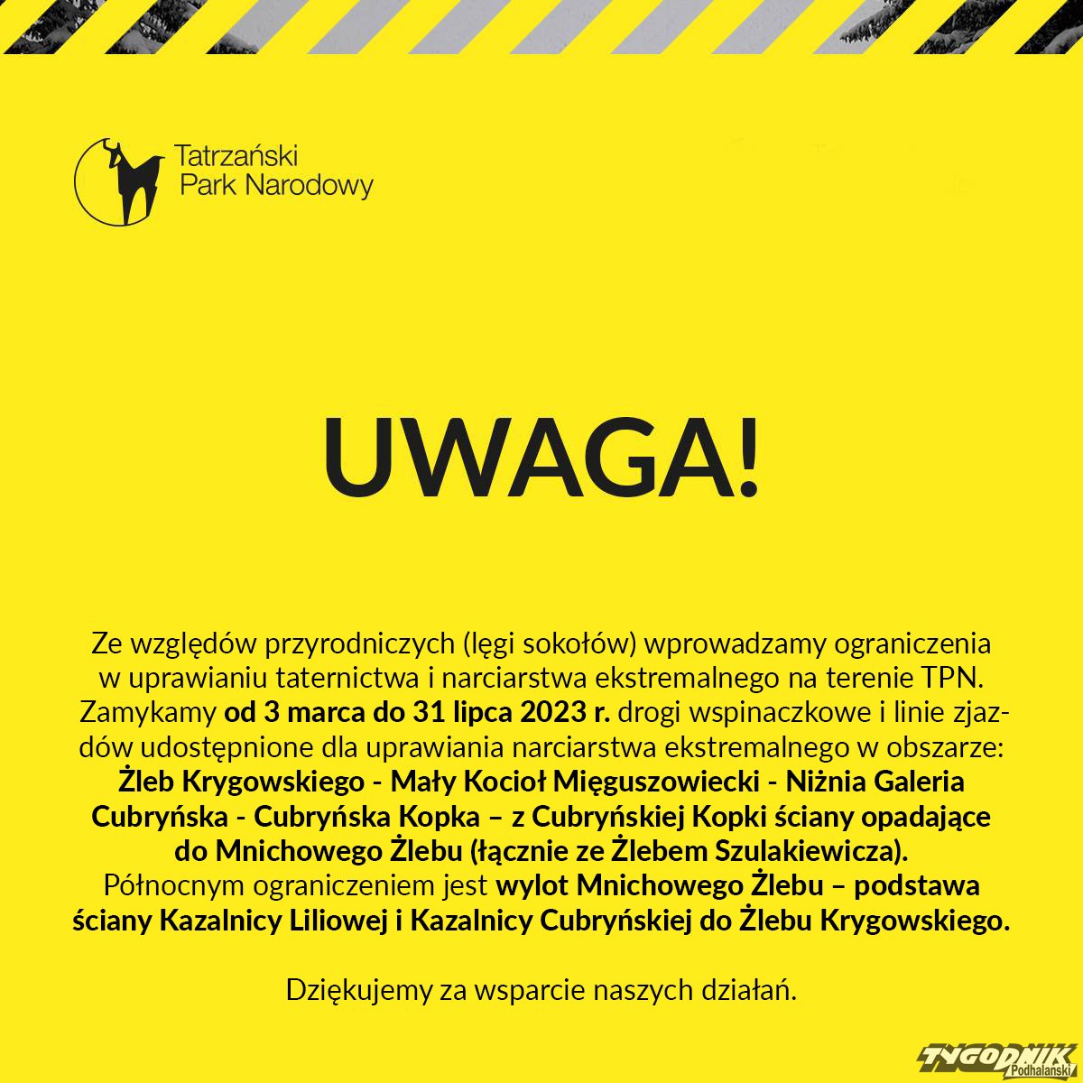 TPN zamyka drogi wspinaczkowe i tereny dla skitourowców
