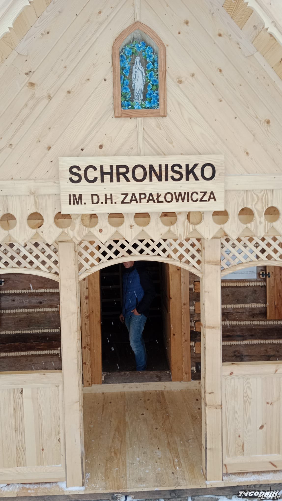 – W 1906 roku w tej niecce figurę osobiście ustawił Hugo Zapałowicz. Ona się zachowała, ale stanowi część krzyża, który stoi na Markowych Szczawinach. Dokładnie ją zmierzyliśmy. Bardzo podobna została już zamontowana w niecce nad wejściem do zrekonstruowanego schroniska – opisuje przebieg prac Jerzy Żak. Dodaje, że poniżej daszku nad wejściem umieszczono tablicę z identycznym napisem jaki witał turystów ponad 100 lat temu.