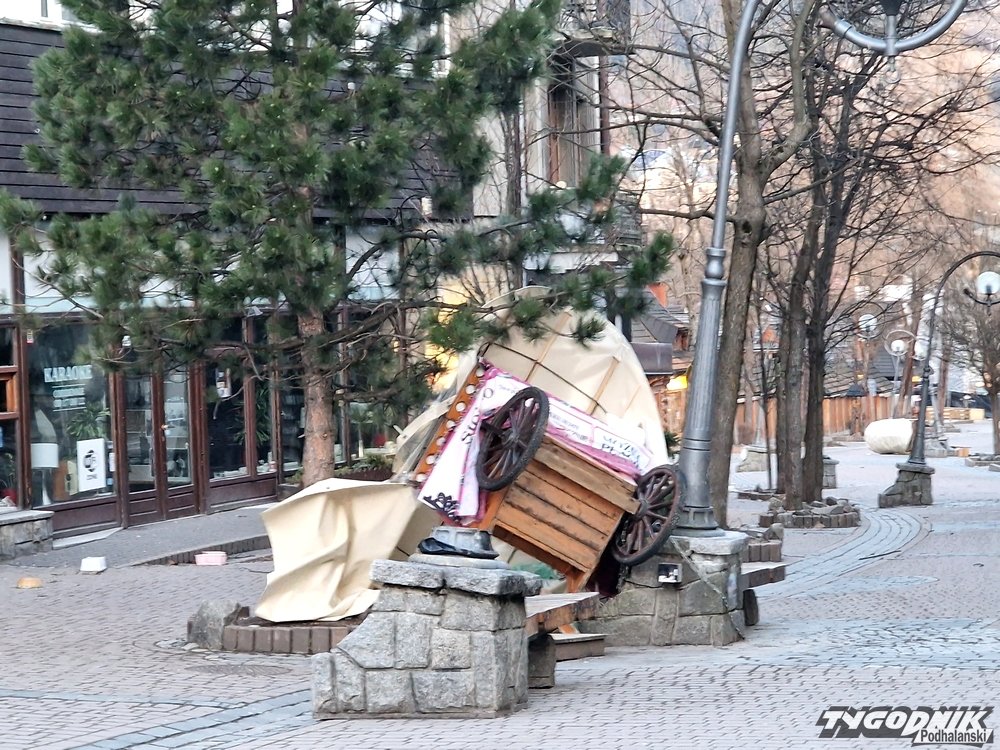 Od czwartej rano strażacy byli wzywani do powalonych przez wiatr drzew i konarów. Na Krupówkach wiatr wywracał stragany. Na skrzyżowaniu Krupówek i Tetmajera uszkodził sygnalizacją świetlną.