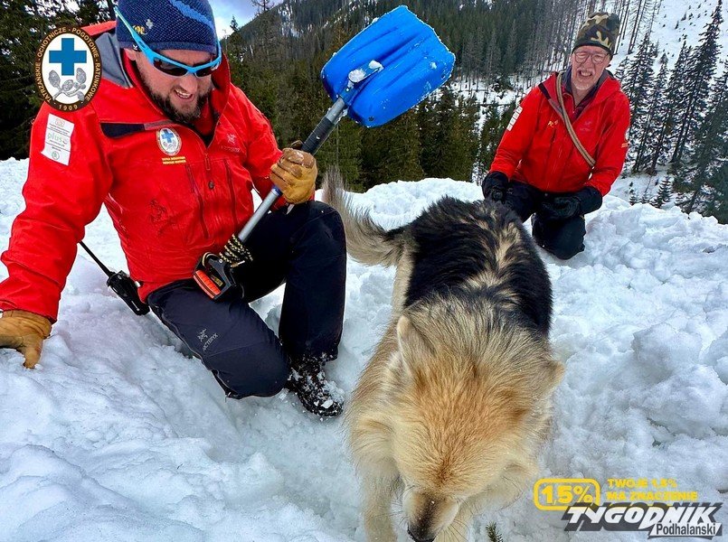 Zasypani turyści pod śniegiem, polsko-słowackie ćwiczenia z psami lawinowymi