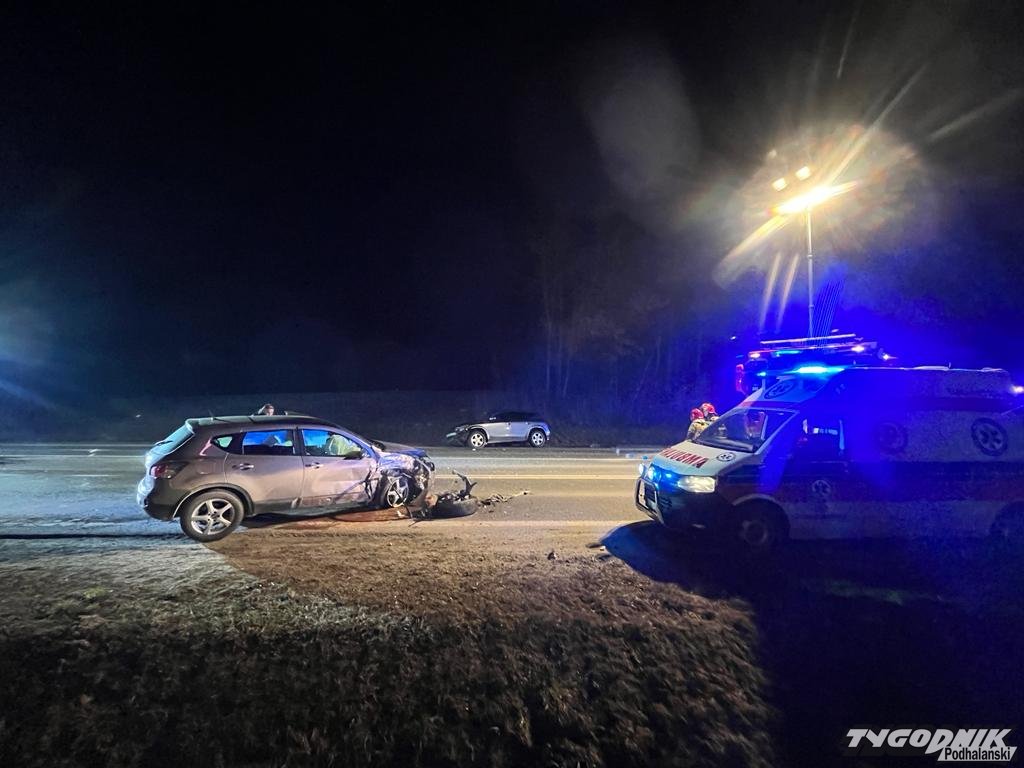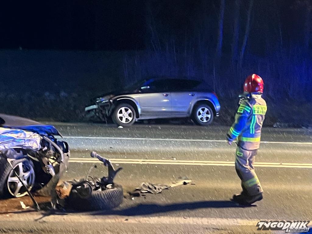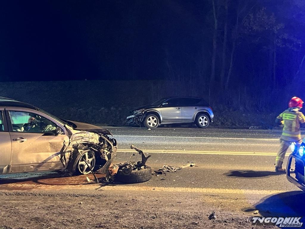 Wypadek zdarzył się przy wyjeździe z Raby Wyżnej w stronę Spytkowic, w sąsiedztwie stacji paliw. W zderzeniu czołowym dwóch aut osobowych ucierpiały dwie osoby. Jeden z poszkodowanych jest wciąż opatrywany w karetce. Na miejscu pracują policjanci i strażacy. Droga krajowa jest zablokowana, ruch odbywa się wahadłowo przez teren stacji paliw.