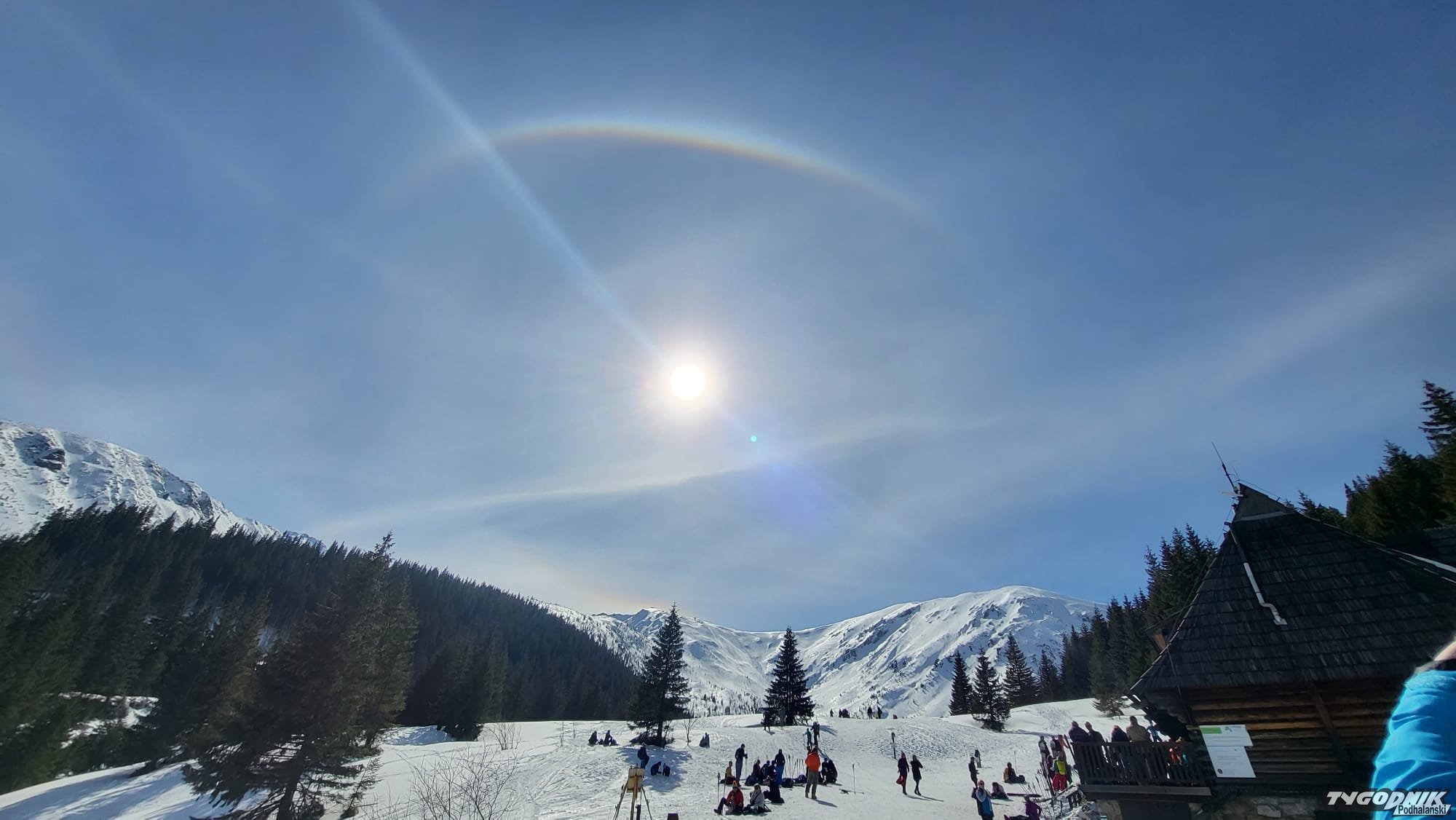 Kto wybrał się dziś na tatrzańskie szlaki poczuł jak mocna jest jeszcze zima w górach. Dzięki pięknej pogodzie, przy bezchmurnym niebie można było zażywać kąpieli słonecznych. A także podziwiać tęczowe barwy na niebie za sprawą słonecznego halo.