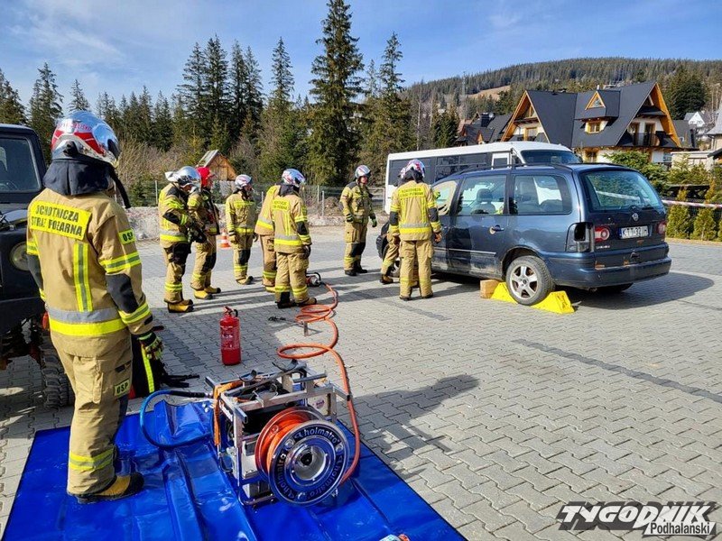 Zakleszczonymi pasażerami byli strażacy, druhowie z Kościeliska i Zakopanego przeprowadzili udane ćwiczenia ratownicze.