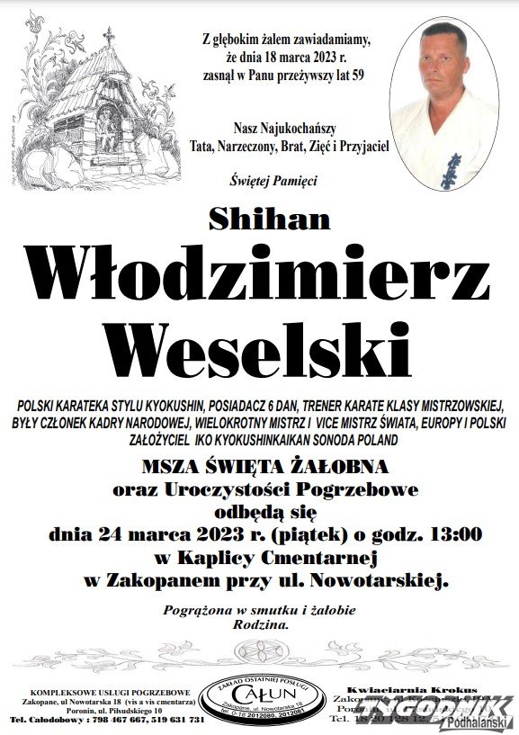 Rodzina, przyjaciele i najbliżsi pożegnają Włodzimierza Weselskiego w najbliższy piątek 24 marca.