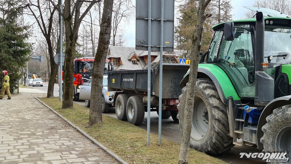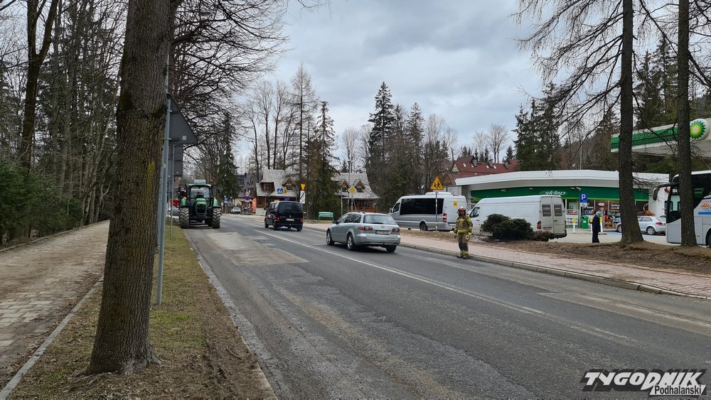 Zepsuty traktor i plama oleju na Drodze na Bystre w Zakopanem
