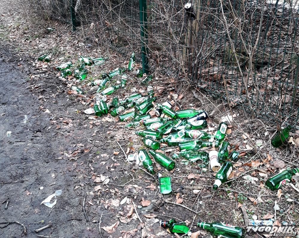 Po zimie na światło dzienne wychodzą nie tylko krokusy, ale także takie oto "kwiatki". Butelek jest tu bez liku. Widać, że ktoś zrobił sobie tu stałe miejsce do imprezowania albo po prostu regularnie podrzucał butelki.