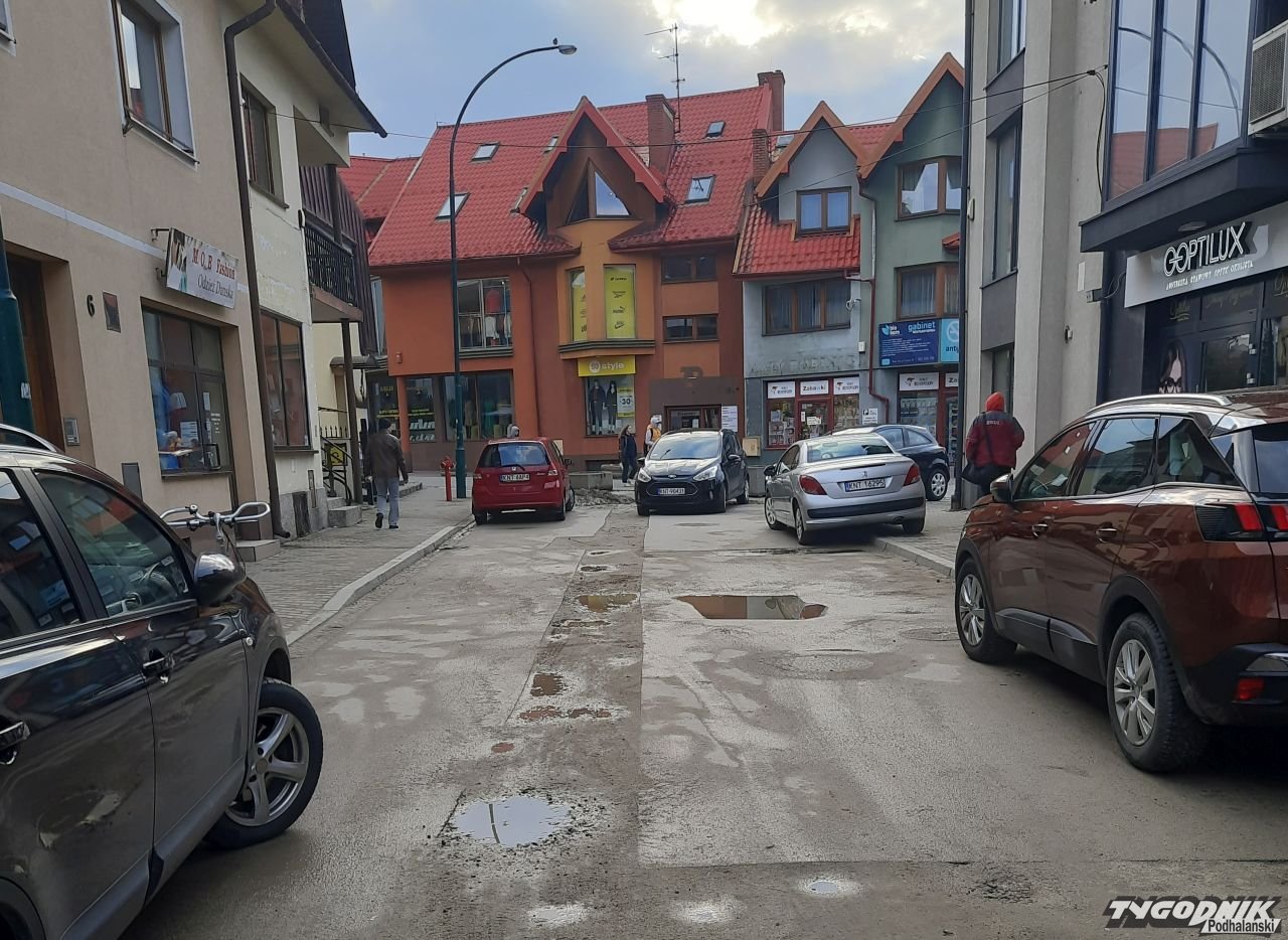 Ze względu na adres nie mieli szans na podłączenie do sieci MPEC, ale i tak brodzą w błocie. Tuż obok miejskiego deptaku czyli ul. Krzywej w Nowym Targu.