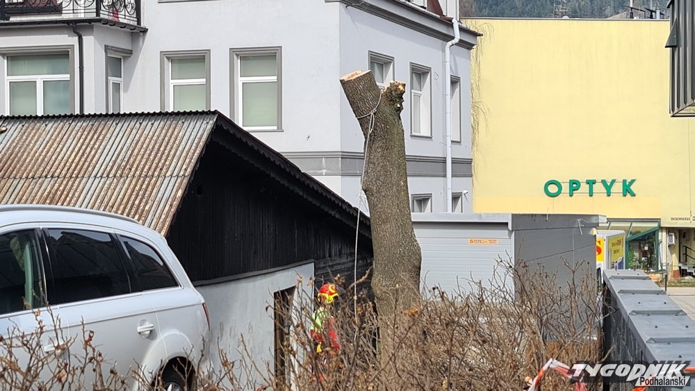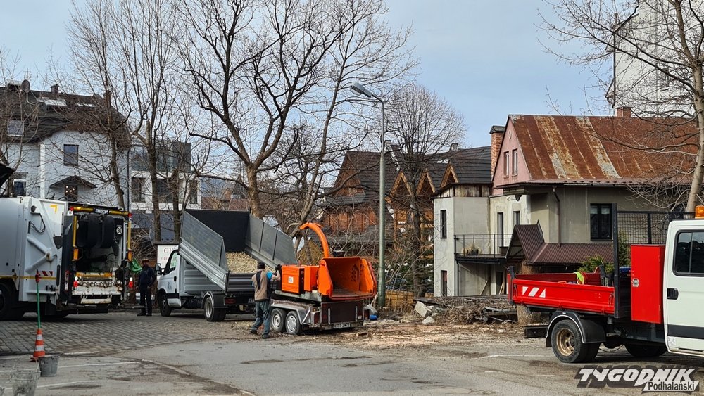 Drzewa wycięte przy Domu Handlowym Granit w Zakopanem