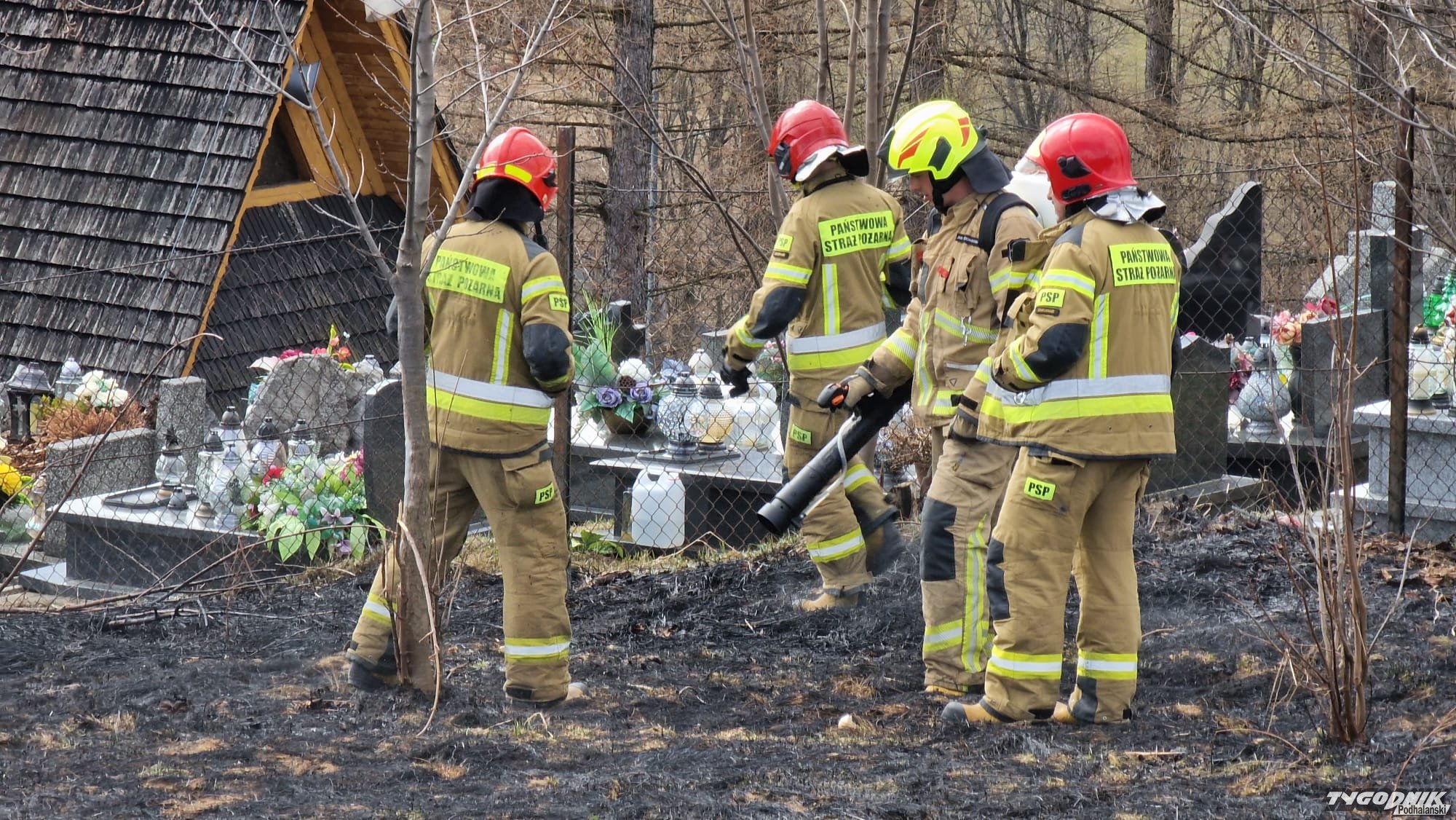 Ludzka głupota nie zna granic. Na nic tłumaczenia o szkodliwości wypalania dla gleby i żyjących w niej organizmów, na nic wysokie grzywny jakie grożą za podpalanie traw. Amatorów tego typu rozrywki wciąż nie brakuje. Dziś strażacy musieli gasić płonące trawy na łące powyżej cmentarza na Olczy przy ul. Piszczory. Na miejscu są też policjanci poszukując sprawcy podpalenia.