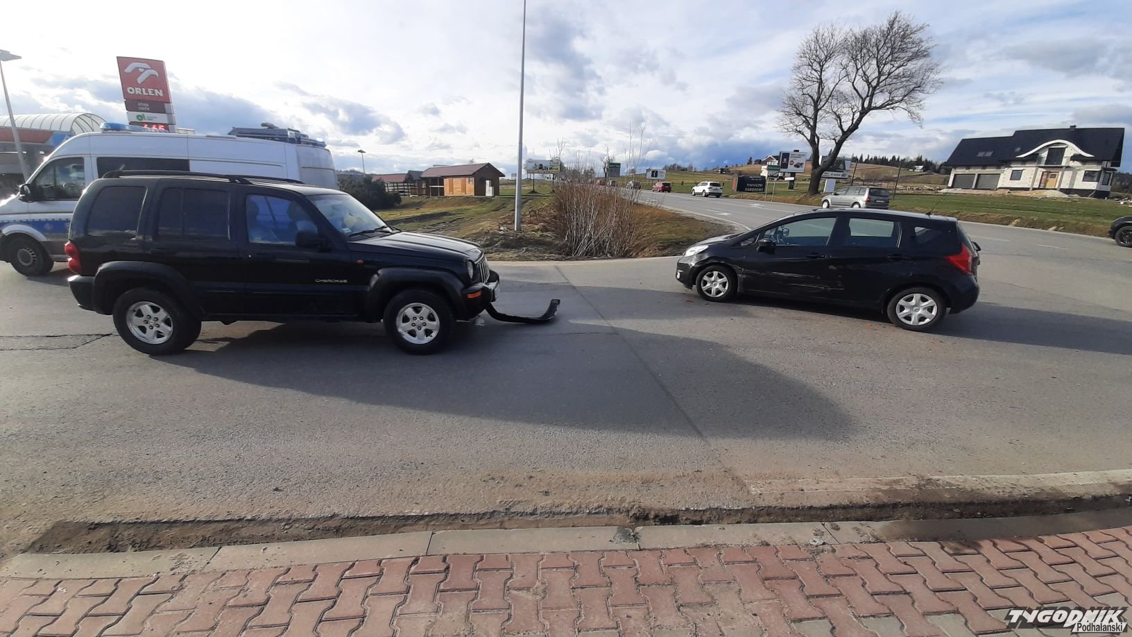 Wypadek zdarzył się dziś po południu. Do zderzenia osobówki i terenówki doszło, gdy jeden z kierowców usiłował skręcić z zakopianki do stacji benzynwej. Na szczęście nikt w wypadku nie ucierpiał.