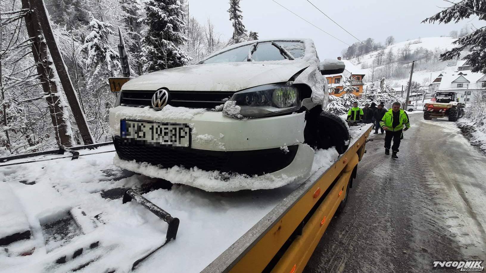 O poranki droga prowadząca przez Rdzawkę była pokryta śniegiem i bardzo śliska. Efekt: dwie poważne kolizje, do których doszło w tym samym miejscu. Kierowca opla astry wypadł z drogi i uderzył w barierę z kolei kierująca volkswagenem na śliskiej drodze również wypadła na pobocze a następnie auto uderzyło w skarpę.