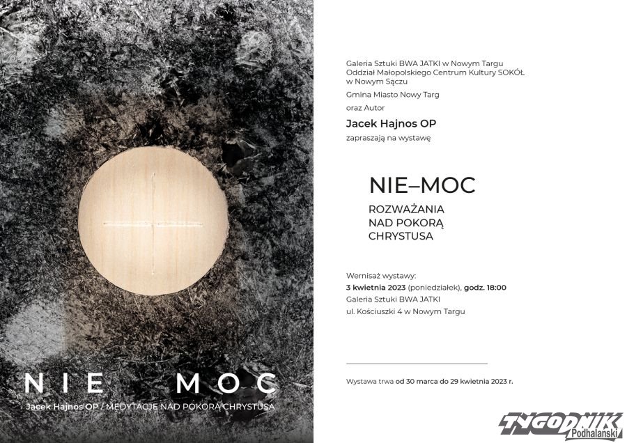 Zapraszamy do Galerii Sztuki BWA JATKI w Nowym Targu. W jej przestrzeni wystawienniczej od czwartku 30.03 oglądać będzie można ekspozycję "NIE-MOC - rozważania nad pokorą Chrystusa" autorstwa Jacka Hajnosa OP.