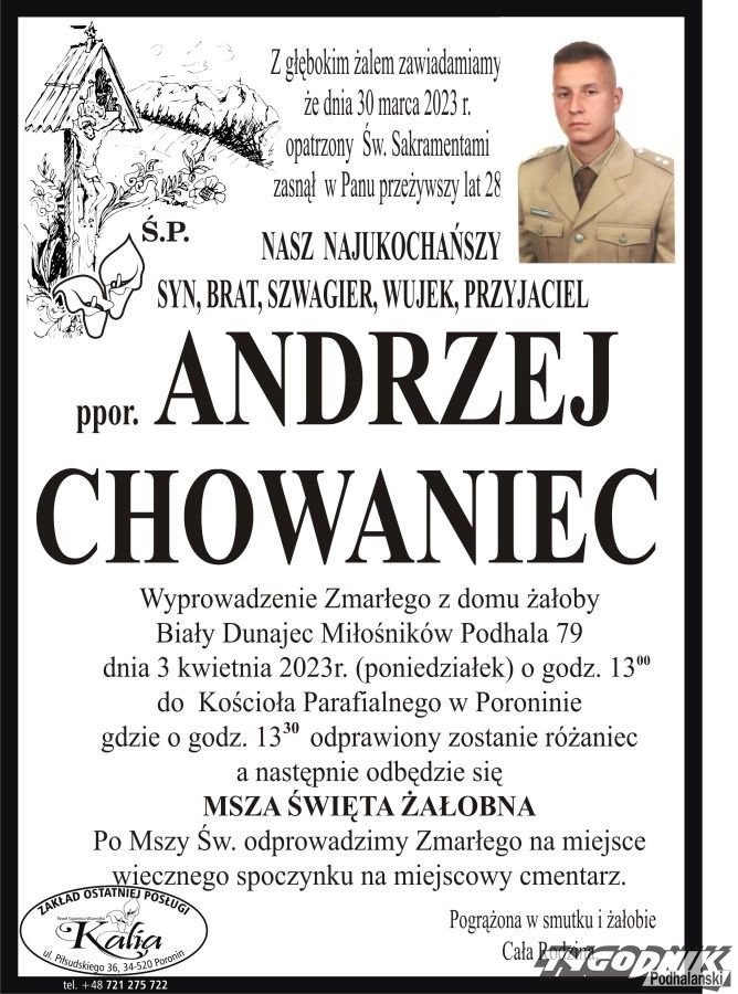 Zmarł ppor. Andrzej Chowaniec. Miał 28 lat. Wojskowy pogrzeb w poniedziałek