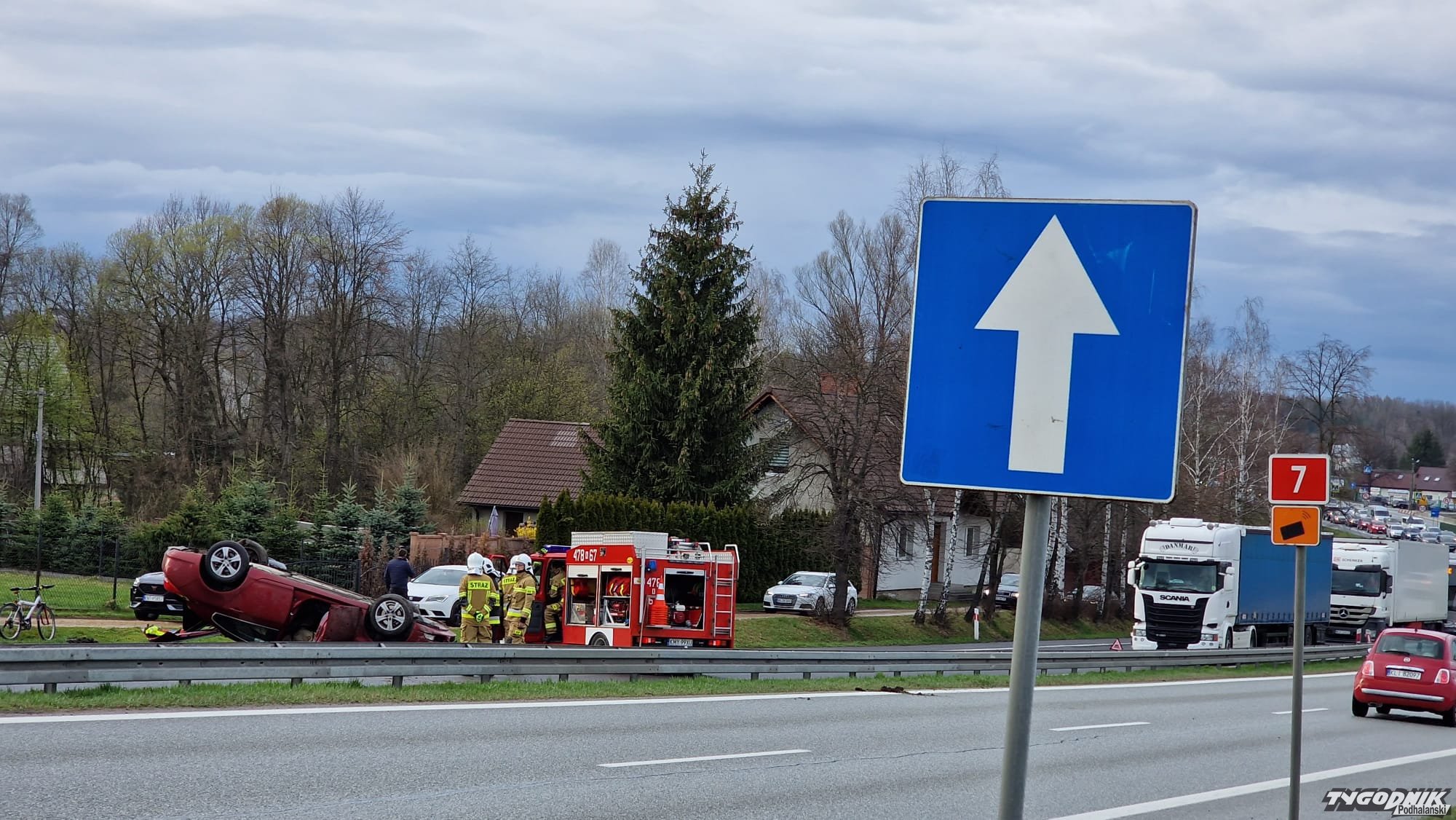 Dachowanie na zakopiance. Utrudnienia w ruchu w stronę Podhala! (WIDEO LIVE)