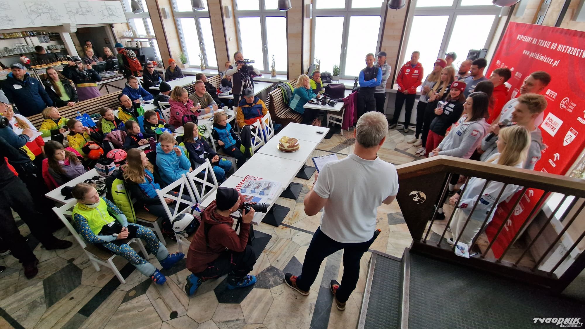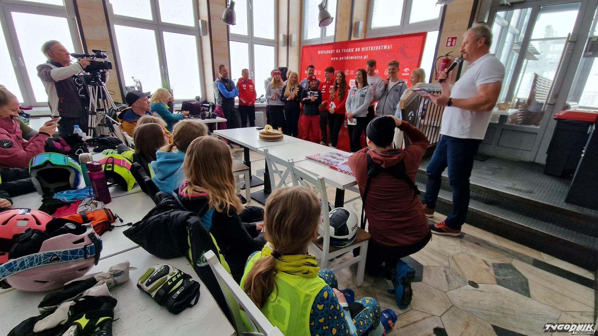 Na Kasprowym Wierchu młodzi narciarze z zakopiańskich klubów przepytywali naszych najlepszych alpejczyków i snowboardzistów.